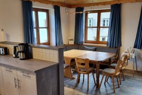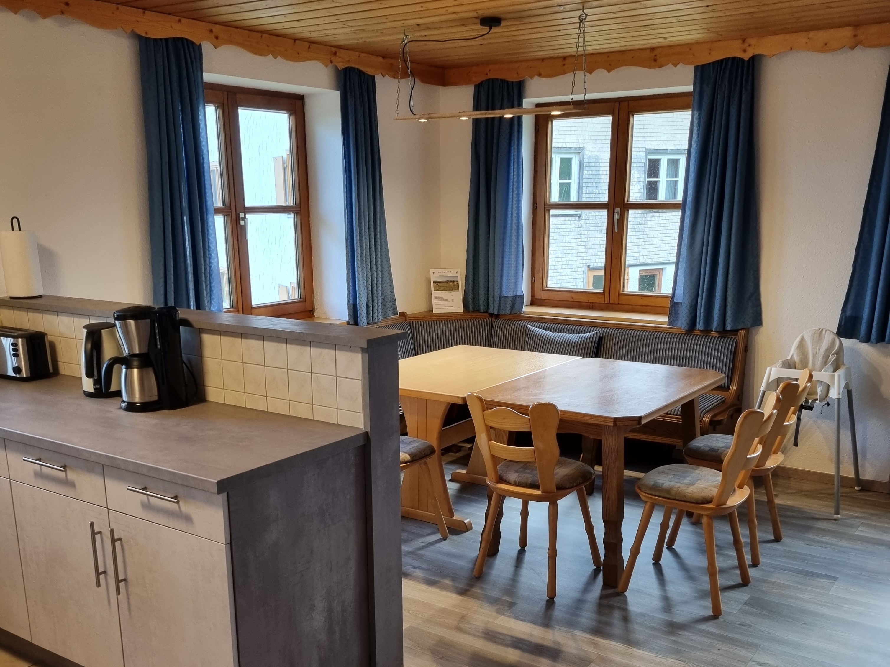 Unser Gästehaus befindet sich in traumhafter Alleinlage mit Rundblick auf die Allgäuer Alpenkette in 1000 m Höhe. Hier ist die Welt noch in Ordnung und Ihnen wird viel Ruhe zum Erholen geboten. Zu jeder Jahreszeit hat unsere Umgebung seinen besonderen Reiz, ob Sie Entspannung. Ruhe oder die sportliche Herausforderung suchen. Kinder dürfen selbstverständlich am Leben auf dem Bauernhof teilnehmen und sind immer gerne gesehen. Unsere Tiere freuen sich immer über besondere Zuwendung. Ob Frühjahr, Sommer, Herbst oder Winter. Zu jeder Jahreszeit finden sie eine abwechslungsreiche Landschaft und gesunde Luft. Saftig grüne Wiesen, klare Bergseen oder eine verschneiter Wintertraum laden Sie zu einem unvergesslichen Urlaub bei uns in der Ferienregion Alpsee-Grünten ein. Gästehaus Frontview Unser 2021 renoviertes Gästehaus liegt im separaten Anbau des Bauernhofes und bietet 4-10 Personen Platz. Die 2022 renovierte Ferienwohnung, im Nebenhaus, geeignet für 2-9 Personen ist sehr wohnlich und gemütlich ausgestattet. Für Gruppen besteht immer die Möglichkeit, bis zu drei Wohnungen anzumieten. Im Gästehaus sind Aufenthaltsbereich und Küche groß genug gestaltet das problemlos alle Personen Platz finden. Der Abstand zwischen den Gebäuden beträgt ca. 100 m. Freuen Sie sich auf Urlaub und Erholung im Herzen des Oberallgäus. Wir freuen uns auf Ihren Besuch! Ihre Familie Rimmel