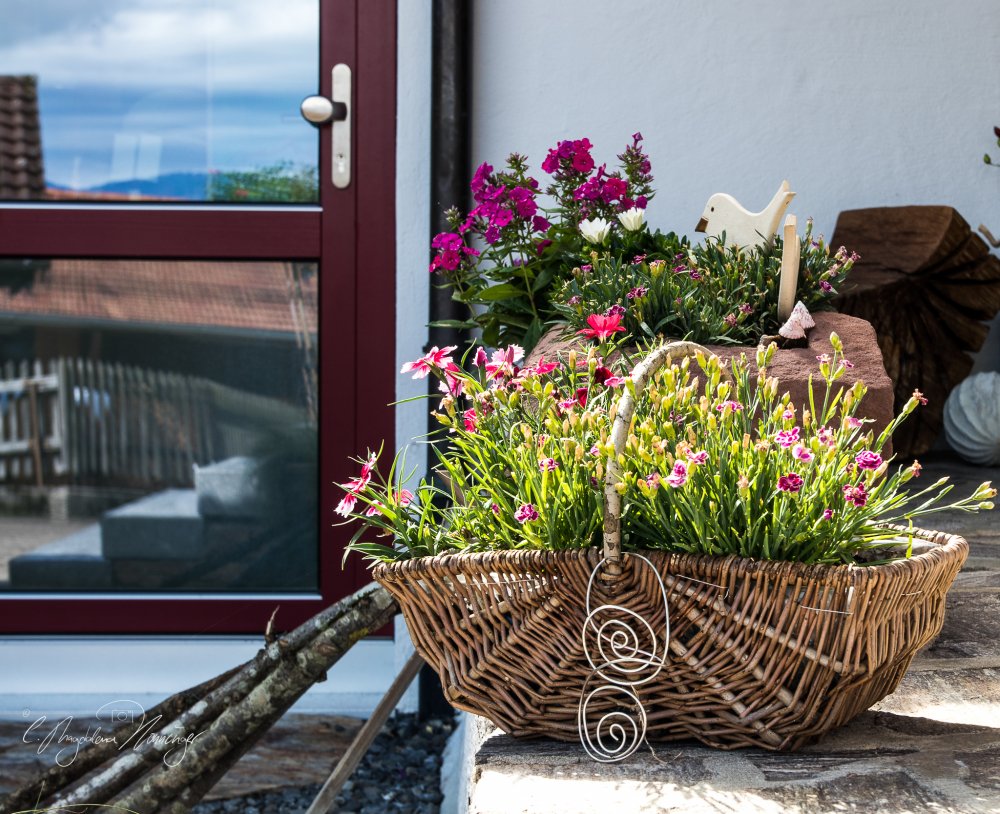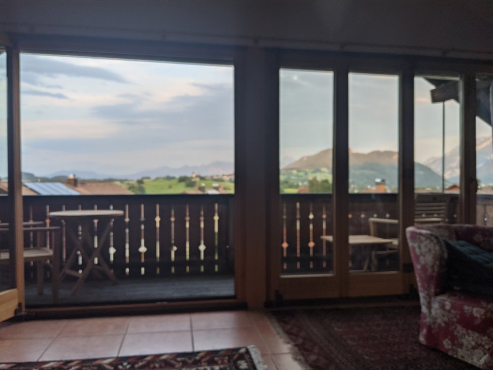 144 qm auf 2 Stockwerken mit Südbalkon und Garten und herrlichem Bergblick.