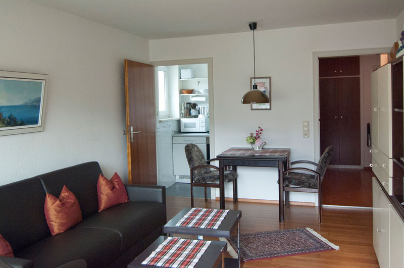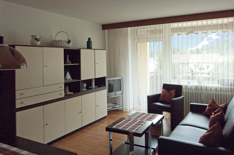 Küche: Zusatzausstattung: Cerankochfeld, el. Zitruspresse, Sanitär: Waschmaschine, Handtücher im Preis inbegriffen, großer Spiegelschrank, Schlafzimmer: Doppelbett, Bettwäsche im Preis inbegriffen, großer Schlafzimmerschrank, Wohnraum: Wohnzimmercouch, -Sessel und -Tisch, Wohnzimmerschrank, Esstisch, Sonstiges: Balkon mit Markise und Balkonmöbeln, Radio-TV (Kabel) DVD, Video, Fondue, Raclette,