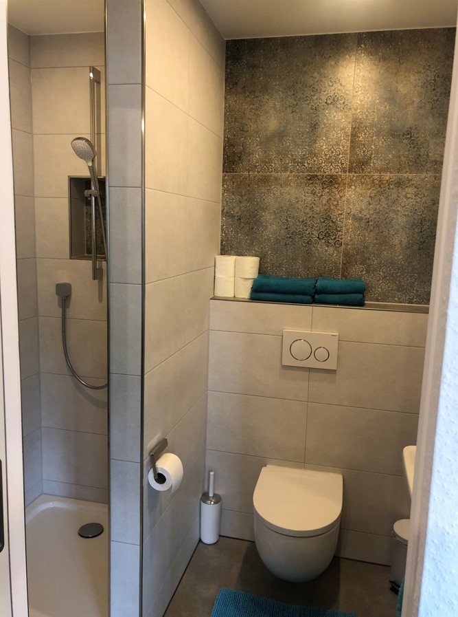 Das eigene Badezimmer erreichen Sie über den Flur.