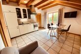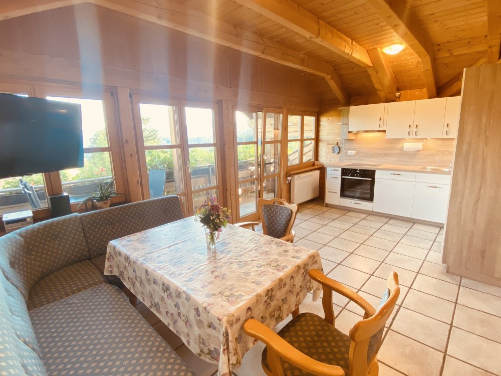 Ferienwohnung Stoffelberg: Wohnküche, 1 Schlafzimmer mit Doppelbett, Duschbad und großem Westbalkon