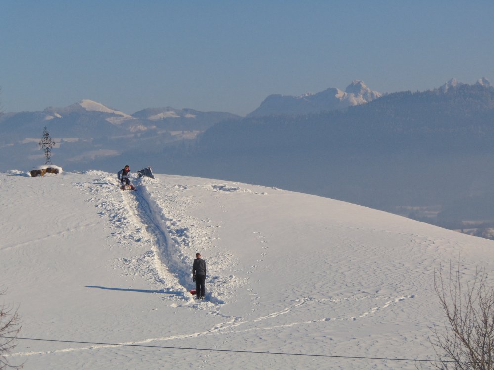 Im Winter stehen Ihnen mehrere Schlitten und 2 Paar Schneeschuhe kostenlos zur Verfügung. Wenn Sie Langlaufski mitbringen, machen wir gerne mit Ihnen eine Skiwanderung durch völlig unberührte Natur. Wunderschöne Loipen in der Nähe warten auf Sie, z.B. Loipenparadies Knottenried 6 km, Stoffelberg 2 km. Skilifte, z.B. in Immenstadt oder Missen-Wilhams erreichen Sie schon in gut 10 km. Wenn Sie auf mehr als 2.000 m Höhe hinaufwollen, können Sie zum Nebelhorn oder Fellhorn in Oberstdorf fahren (ca. 35 km).