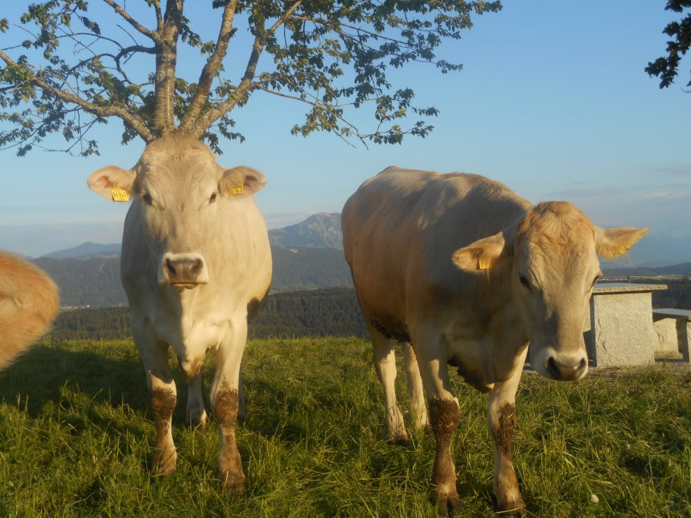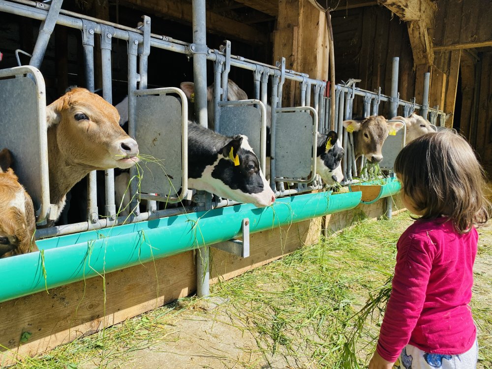Wir nehmen Sie gerne mit zu einer Wanderung zu unseren Lieblingsaussichtspunkten. Ein ganz toller Aussichtspunkt liegt nur 100 m vom Haus. Von der Bank, die wir dort aufgestellt haben, genießen Sie gleichzeitig einen herrlichen Blick ins Gebirge und auf den Niedersonthofer See mit mehreren Badeplätzen. Kinder dürfen jederzeit zum Stall, wo sie unsere Kälber streicheln können.
