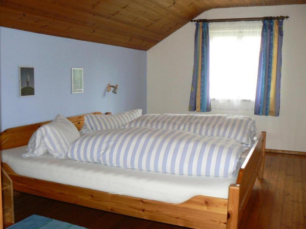 Das Ferienhaus bietet 62 m² Wohnfläche, zwei Schlafzimmer, Wohnküche, mit Kachelofen und Ofenbank, Dusche/WC und Südterasse.