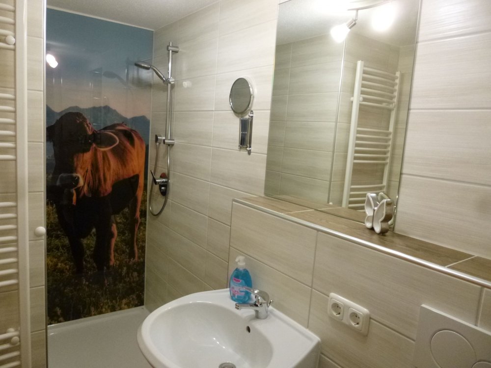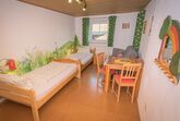 Schöne neue Fewo mit Wohnküche ( komplette Küchenzeile mit Spülmaschine), 2 Bäder, 3 Schlafräume ( 2 x Doppelbett, 1 x 2 Einzelbetten ) , absolut ruhige Lage, möblierter Balkon mit Blick ins Grüne, auf unseren Schwimmteich und auf unseren Spielplatz
