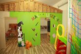 Spielplatz, Stelzenhaus, Riesentrampolin, Slackline, Turnstangen, Schaukel, Rutsche, Fahrgeräte und Spielezimmer mit Bällebad.