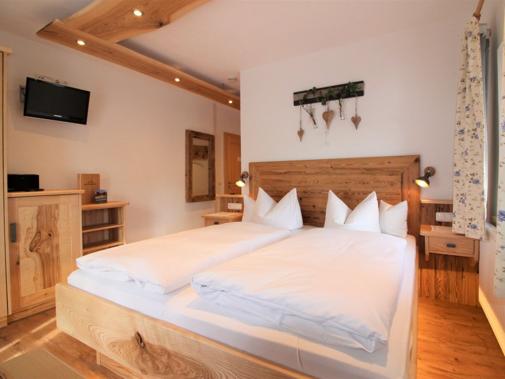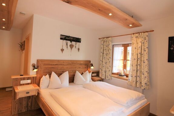 Ihr schönes, ruhiges 4**** Doppelzimmer mit viel Liebe zum Detail im bäuerlichem Landhausstil eingerichtet verfügt über 1 Doppelbett (Größe 180x200 cm),Sat-TV, Radio, ein Badezimmer mit Fenster, Dusche und WC und Balkon.