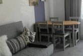Die Küche verfügt über eine voll ausgestattete Küchenzeile mit Kochplatten und Mikrowelle, einem Toaster und einer Kaffeemaschine. Ein separater Essbereich sorgt für zusätzlichen Komfort.