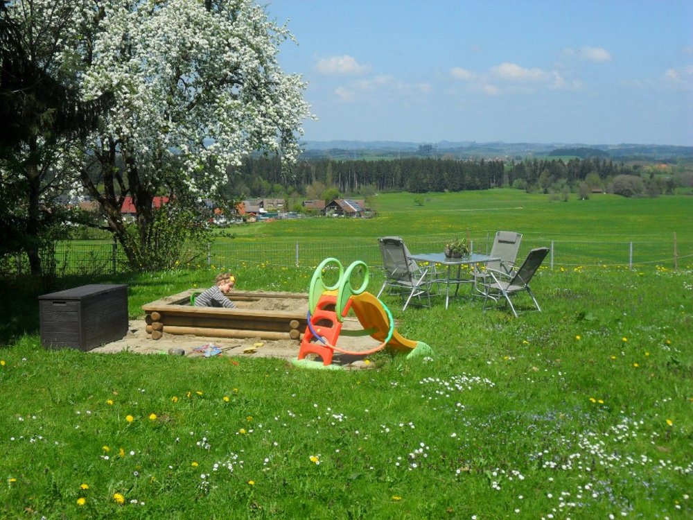Wir haben einen großen Garten zum Toben für die Kleinen, natürlich mit einem Sandkasten für den ein oder anderen Sandkuchen.