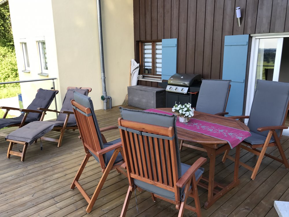 Die Eltern können gemütliche Stunden vor dem Haus oder auf der zur Ferienwohnung gehörenden Terrasse - natürlich mit Grillmöglichkeit - verbringen.