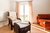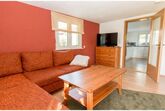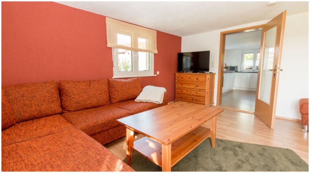 Ein großes Wohnzimmer bietet ausreichend Platz für alle Gäste und lädt für gemeinsame Spieleabende ein. In dem geräumigen Zimmer mit Couch und Sessel können Sie gemütliche Abende verbringen und noch einmal die erlebten Eindrücke Revue passieren lassen. Die hochwertige Couch verfügt über eine komfortable Federkernfederung. Mit dem Flat-Screen Fernseher können Sie sich über die Geschehnisse in der Welt informieren. Ihnen steht ein Internet-Zugang mit WLAN Router zur Verfügung - das heisst Sie können in der Wohnung mit Ihren mobilen Geräten im WLAN surfen.