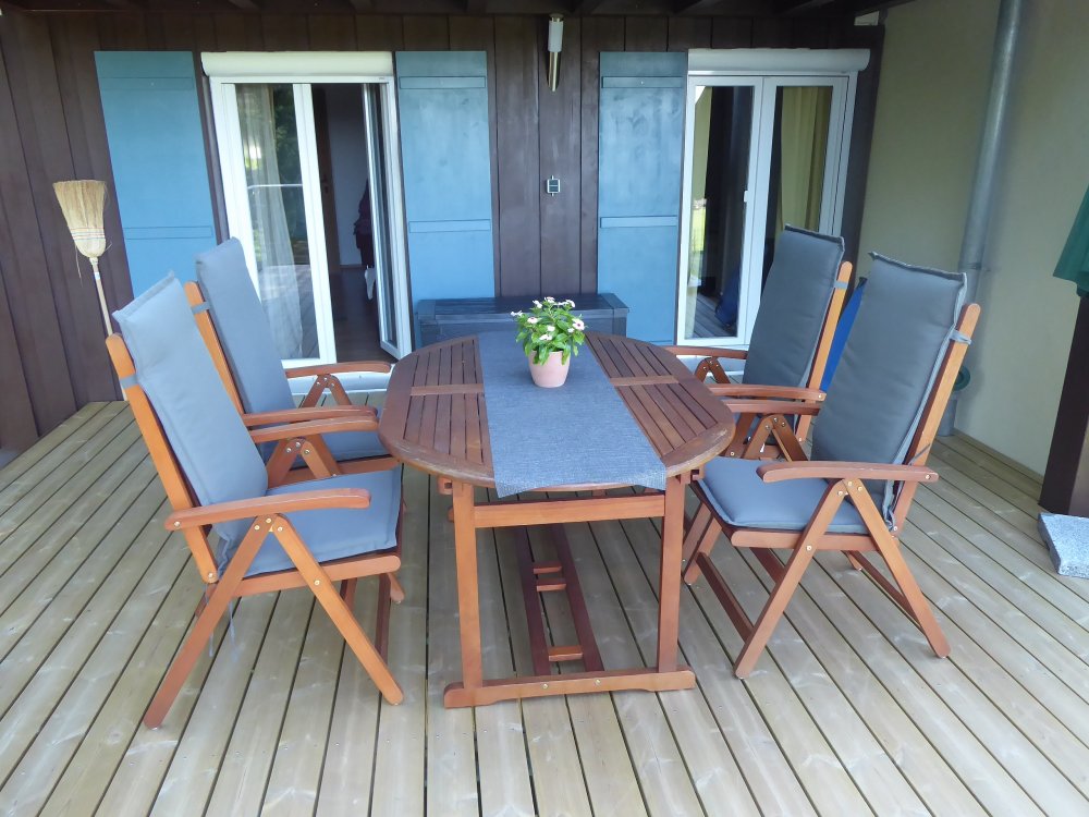 Die Eltern können gemütliche Stunden vor dem Haus oder auf der zur Ferienwohnung gehörenden Terrasse - natürlich mit Grillmöglichkeit - verbringen.