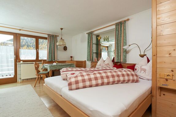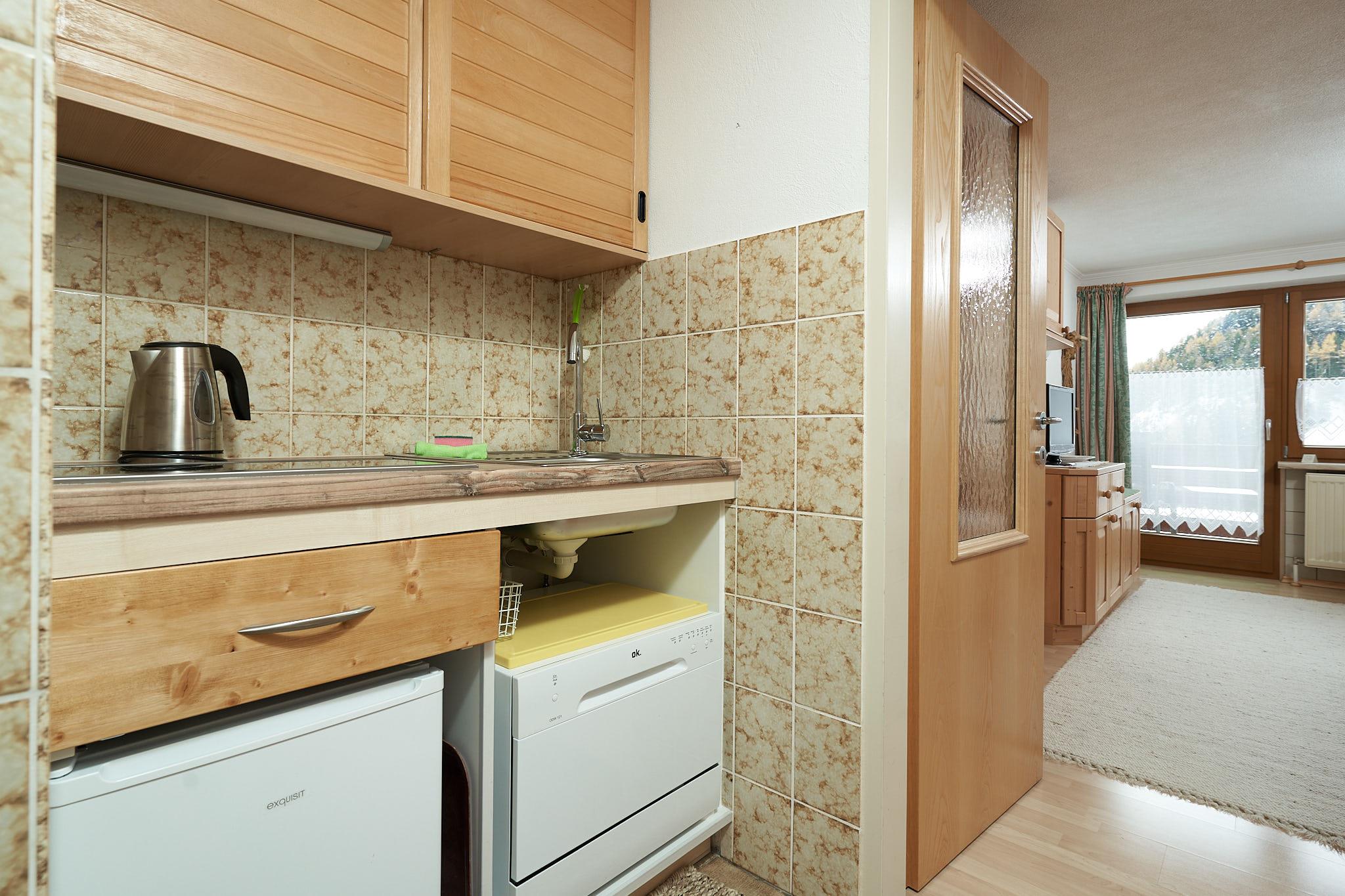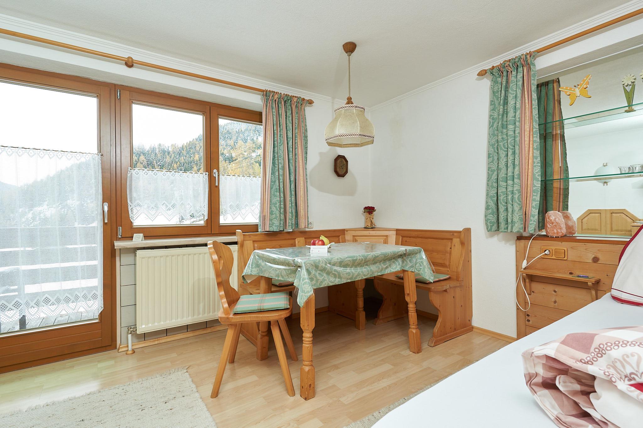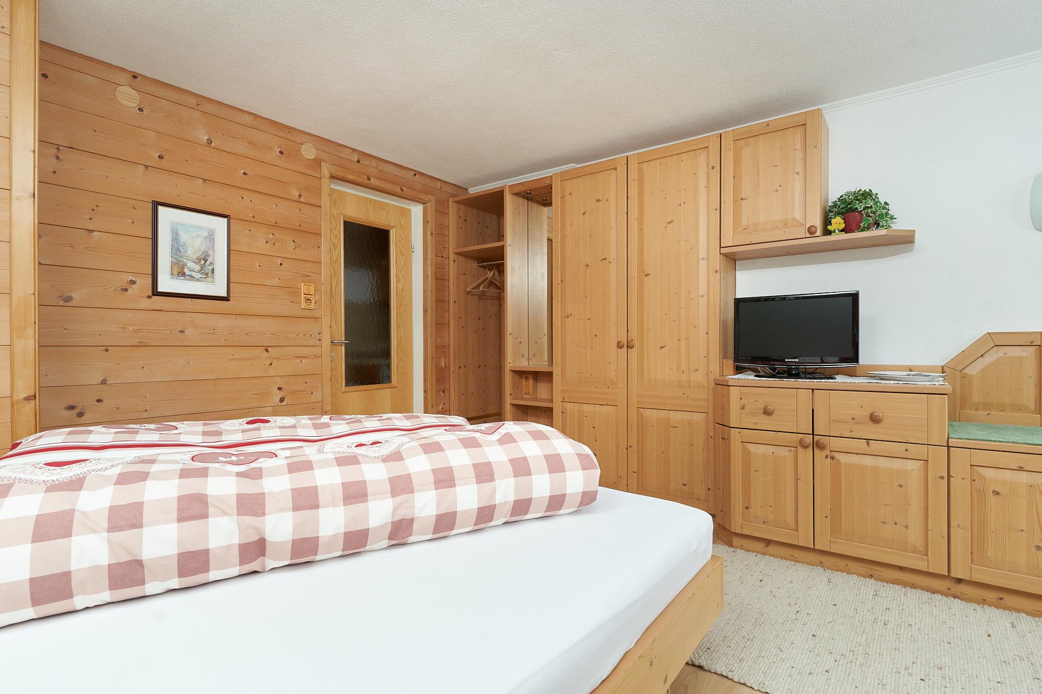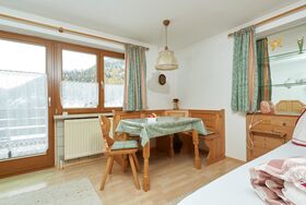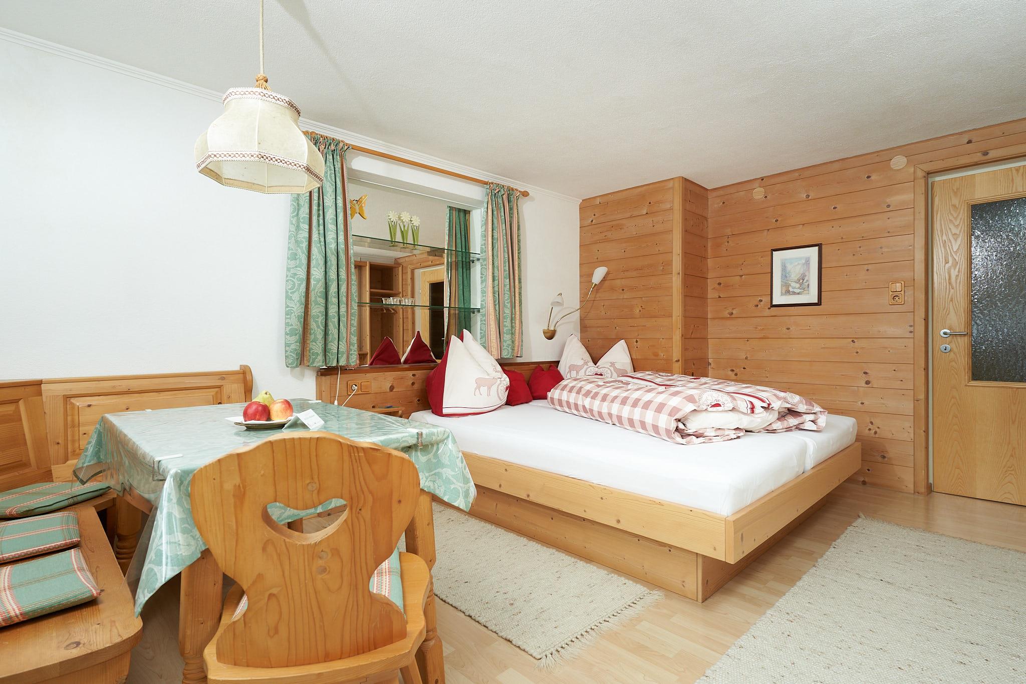 gemütl.eingerichtetes kleines Appartement (ca.35 m2) mit Wohn-/Schlafzimmer (feststehendes Doppelbett),Südbalkon mit unverbautem Blick auf die Bergwelt, Duschbad/WC, Kochecke/Garderobe Ausgestattet mit SAT-TV,Safe,Haarfön,kompl.Küchenausstattung incl.Kaffeemaschine