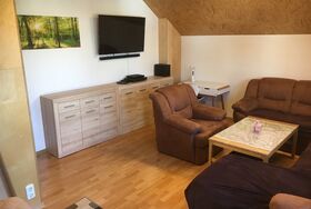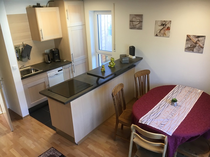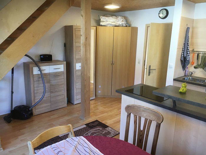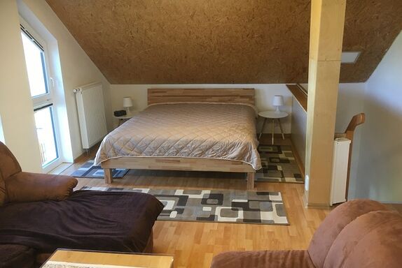Unser Haus samt Ferienwohnung wurde 2011 erbaut und befindet sich in einer ruhigen Randlage. Die Wohnung bietet mit seinen 60qm genügend Platz für einen erholsamen Urlaub. Das Doppelbett und die Ausziehbare Couch bietet Platz für 3 Erwachsene oder 2 Erwachsene und 2 Kinder. Auf zwei Stockwerken verteilt befinden sich im Erdgeschoß das Bad mit Dusche, die Garderobe, die Küche mit Bar und eine gemütliche Essecke. Im zweiten Stock finden Sie ein schönes großes Doppelbett und ein Sofa, dass für ruhige Fernsehabende einlädt. Aber auch wenn mal die Arbeit ruft steht ein Schreibtisch bereit.
