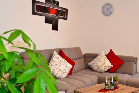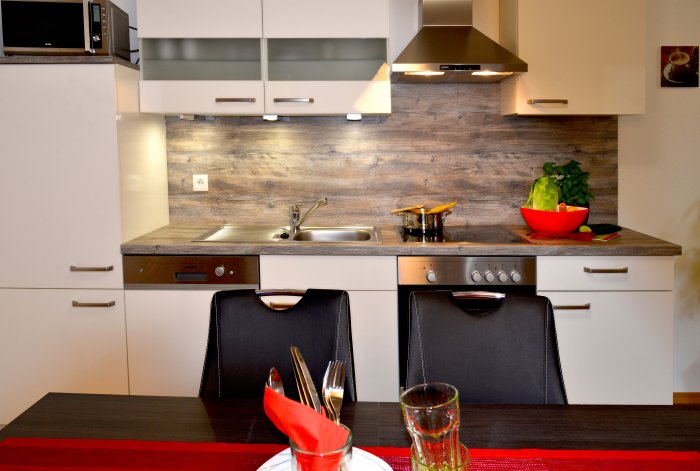 Erleben Sie einen angenehmen Wohnkomfort in der Ferienwohnung. Helle warme Farben und eine gemütliche Atmosphäre, werden Sie rundum begeistern. Auch bei dieser Ferienwohnung ist die großzügige Wohnküche das Herzstück ihres Feriendomizils.