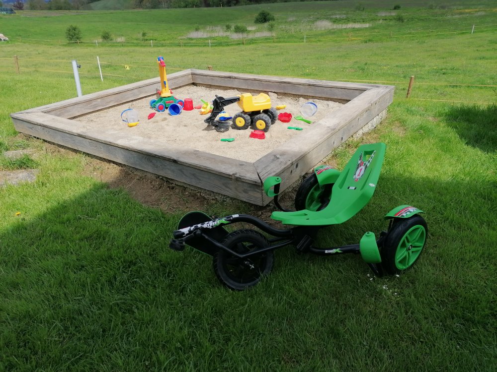 Für die sonnigen Tage finden Sie eine Liegewiese vor. Ihre Kinder erfreuen sich an einer Schaukel, Sandkasten, Tretbulldog, Dreirad oder Kettcar. Bei schlechtem Wetter haben wir auch eine Indoor-Spielscheune.