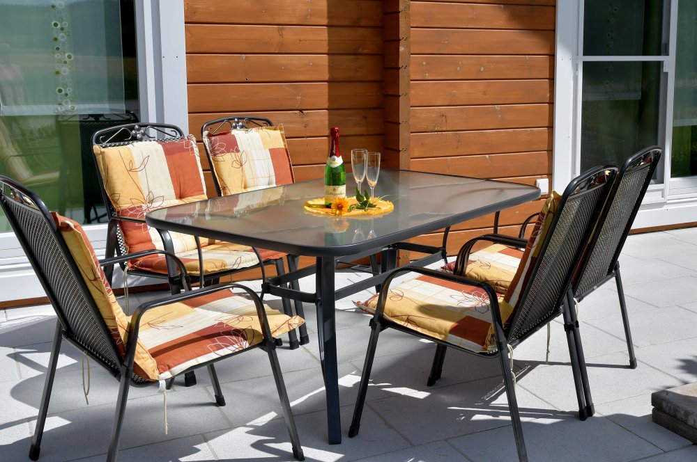 Die möbilierte Terrasse lädt zum Entspannen und Ausruhen ein. Im großen Garten können sich die Kinder nach Lust und