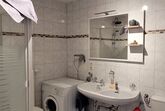 Das innenliegende Badezimmer ist mit einer Dusche, WC und einem doppelten Waschbecken und eine Waschmaschine ausgestattet. In dem großzügigen Wohn- und Essbereich befindet sich neben dem Essbereich für 4 Personen auch ein bequemer Wohnbereich. Von hier aus gelangen Sie direkt in die voll ausgestattete Küche. Kostenfreies WLAN ist selbstverständlich auch vorhanden.