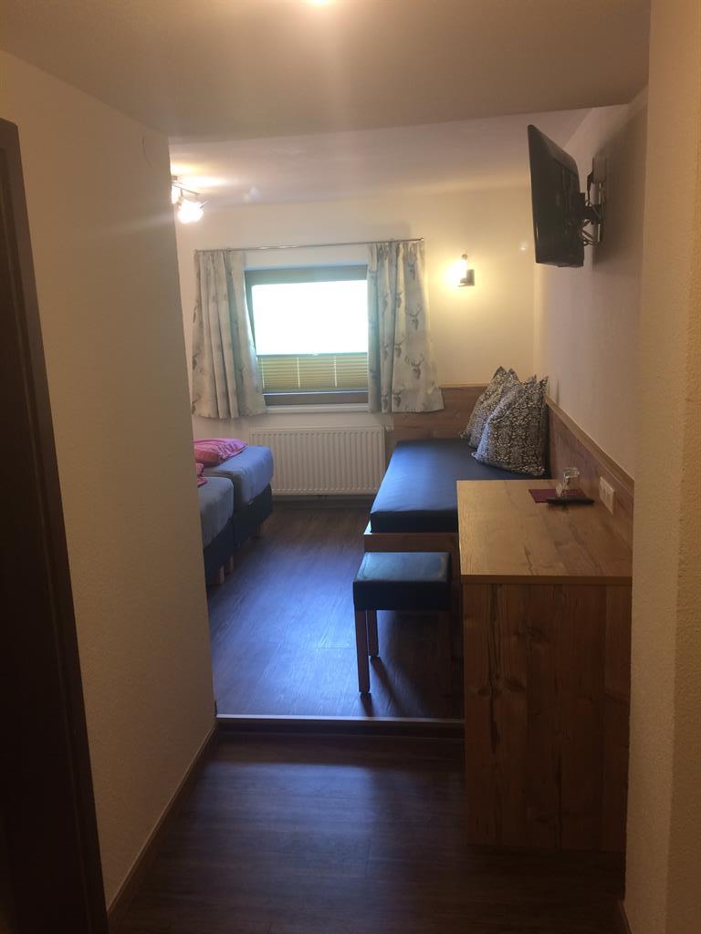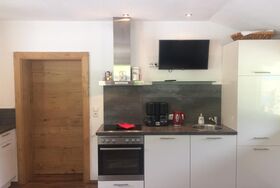 Appartement im 1. Stock mit 2 Doppelzimmern mit zusätzlichem Einzelbett und Sofa mit Flat-TV und jeweils Dusche oder Bad/WC sowie Balkon. Großzügige Wohnküche mit Ceranfeld, Backofen, Spülmaschine, Kaffeemaschine, Kühlschrank und großem Essbereich sowie Flat-TV. Sie können die Terasse im Parterre gerne mitbenutzen. Brötchenservice möglich. Größe: ca. 55 m².