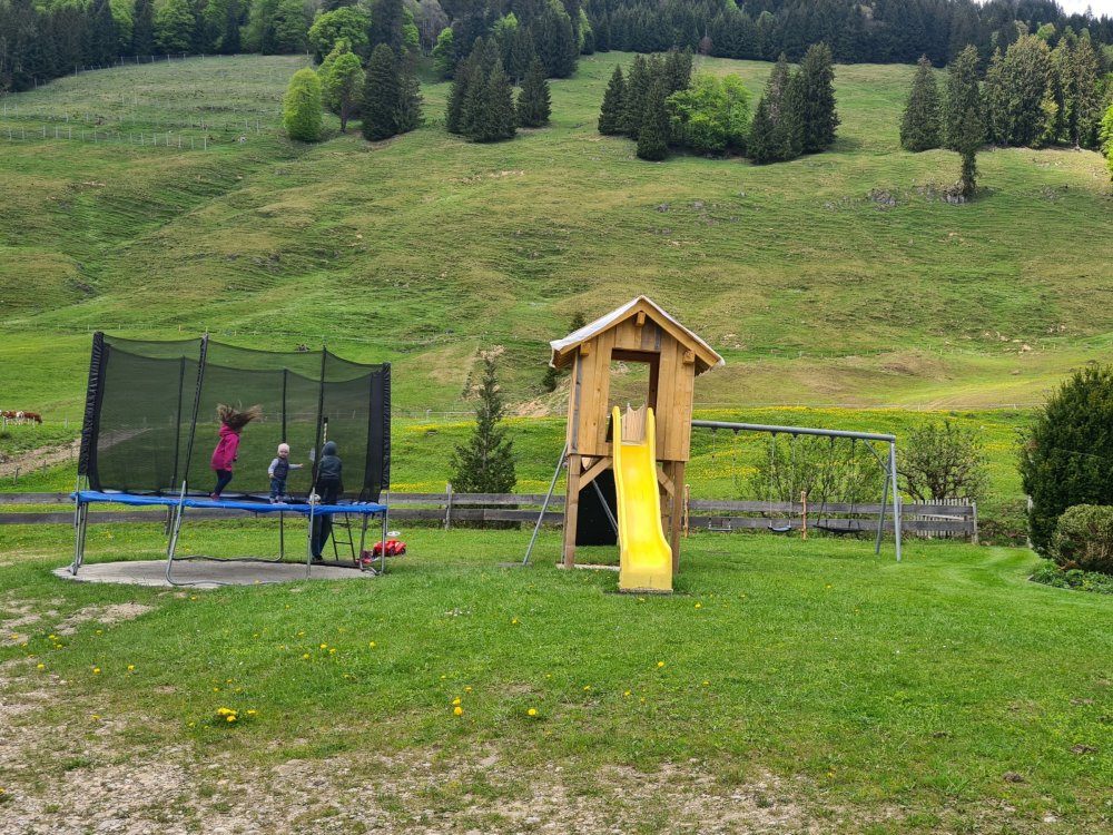 Ausruhen und entspannen können Sie sich in unserem großen Garten mit Liegen, Sonnenschirmen und Grill, oder in unserer Infrarotkabine. Die Kinder vergnügen sich auf unserem Spielplatz mit Trampolin, Schaukeln, Rutsche und Sandkasten. Für alle SchneeliebhaberInnen liegt unser Hof direkt an der Loipe und in Gehweite zum Skigebiet.