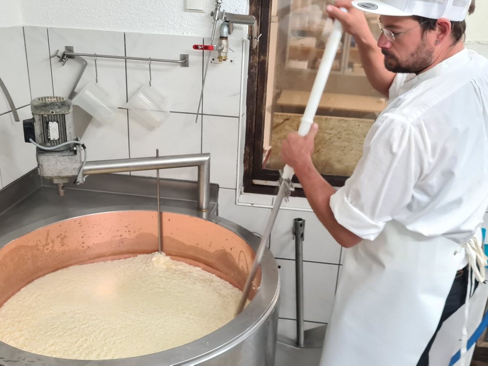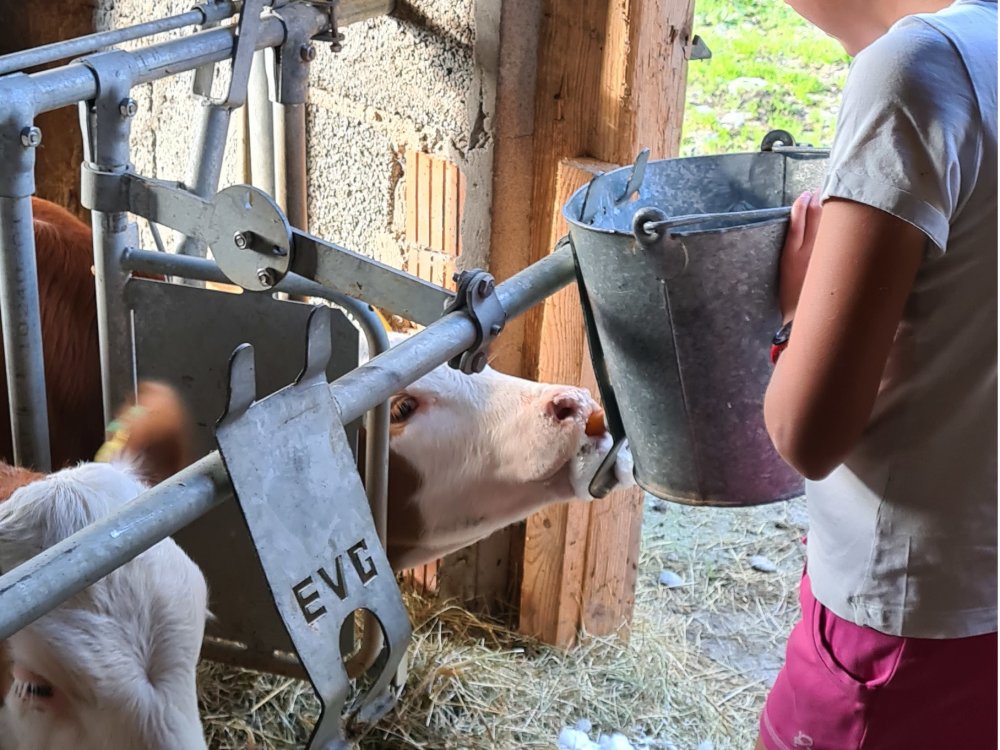 In den Sommermonaten von Juni bis August kann die Hofeigene Alpsennerei besichtigt und bei der Käseherstellung zugeschaut werden. Die Alpkühe werden täglich zweimal gemolken uns kommen tagsüber auf die Weiden ums Haus. Unsere Mastrinder sind in den Wintermonaten im Stall, genauso wie unser Pferd Hella. Auch die werden natürlich täglich gefüttert. Unsere Gäste sind zu den Stallzeiten immer willkommen und dürfen uns über die Schulter schauen.