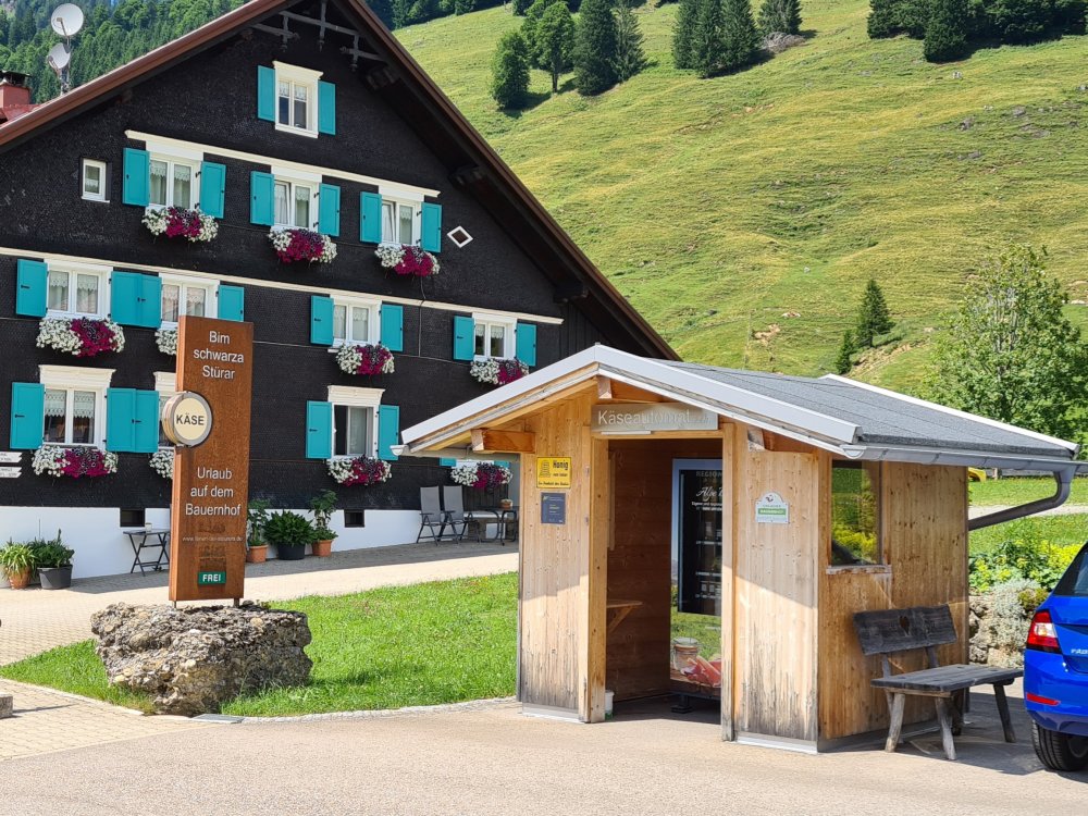 Hofeigene Milchprodukte und Rindfleisch gibt es direkt im Lebensmittelautomaten vor der Türe. Dort findet man auch regionale Produkte wie Eier und Honig. Von Montag bis Samstag werden wir mit frischem Brot von der Bäckerei Alber beliefert.