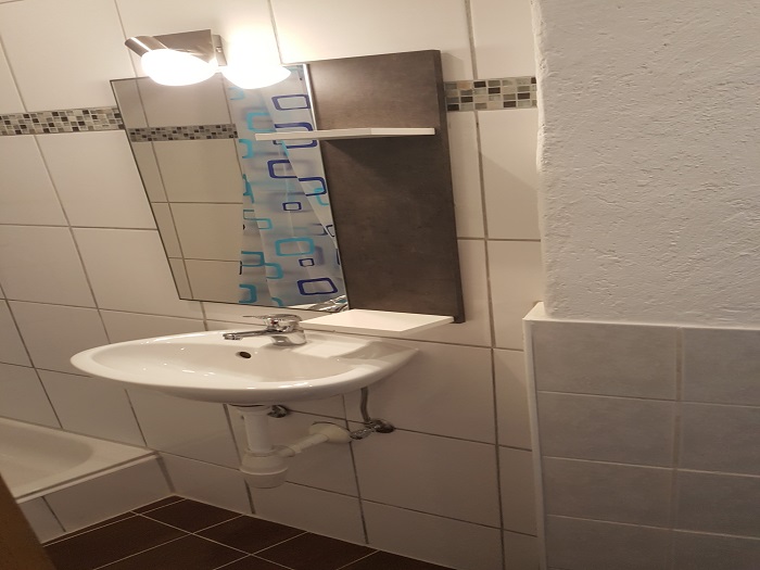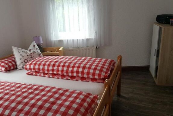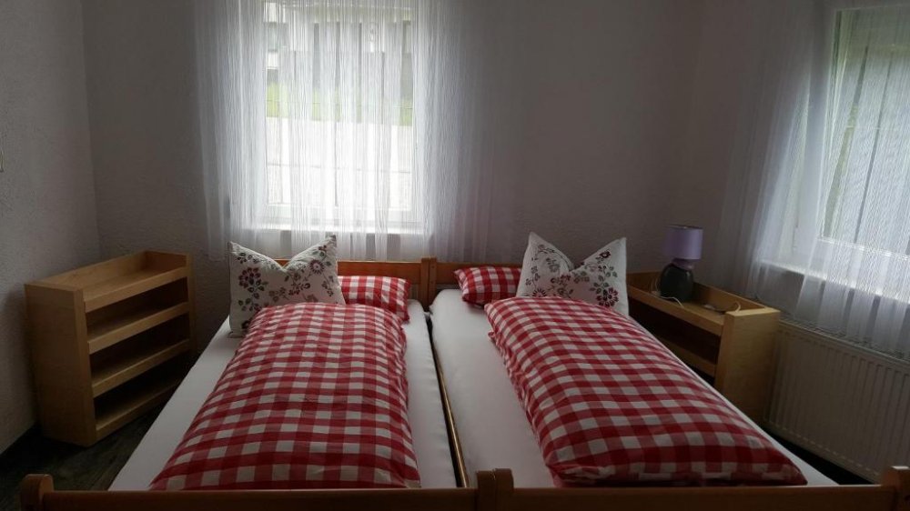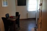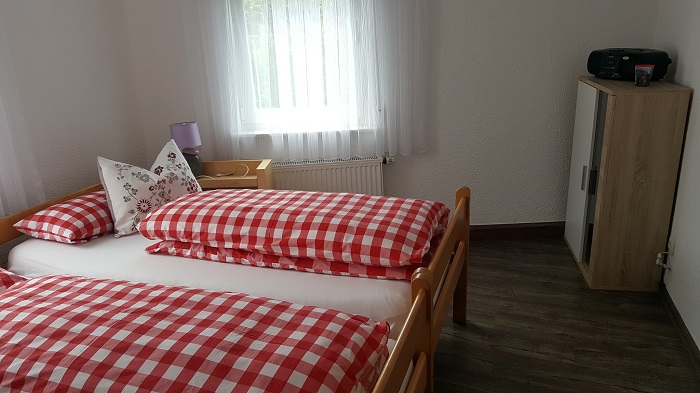 Die Erdgeschoss-Ferienwohnung besteht aus einem Schlafzimmer und einer gut ausgestatteten Küche u.a. mit Wasserkocher, Kaffeemaschine und einem Mini-Backofen. Das Schlafzimmer ist ausgestattet mit 2 zusammenstehenden Einzelbetten, und einer zusätzliche Matraze für eine dritte Person. In der Küche befindet sich ein gemütlicher Essbereich und ein Flachbild-TV. Das Badezimmer mit Fenster ist mit einer Dusche, Waschbecken und WC ausgestattet.