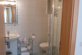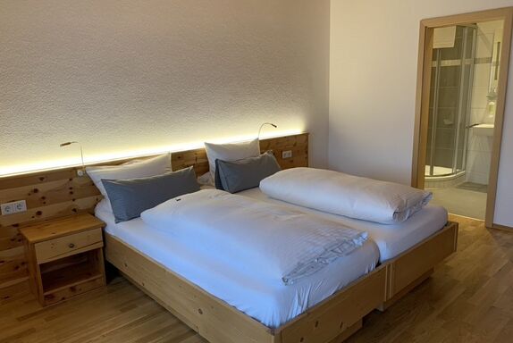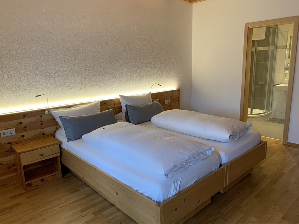 Ihr gemütliches, Zweibettzimmer verfügt über zwei Betten in Größe 90x200 cm, einen Kühlschrank, eine Sitzecke mit TV und ein Badezimmer mit Dusche und WC.