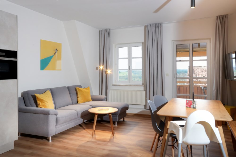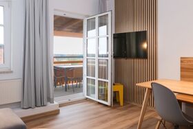 Sie werden sich in dieser großzügigen und komfortablen Wohnung von der ersten Sekunde an Zuhause fühlen. 78 qm Wohnfläche bieten Ihnen sehr viel Platz für einen erholsamen Urlaub. Die Wohnung ist für bis zu 4 Personen bestens geeignet und verfügt über ein sehr großes Kinderzimmer mit einem eigenen kleinen Sofa. Erfreuen Sie sich am herrlichen Blick auf den Altmühlsee vom großen Süd-West-Balkon aus. Ihre Kinder haben Sie ebenfalls gut im Blick, wenn sie auf unserem großen Spielplatz auf Abenteuerreise gehen. Die moderne und hochwertige Ausstattung der Wohnung garantiert Ihnen einen F*****-Sterne-Komfort (DTV).