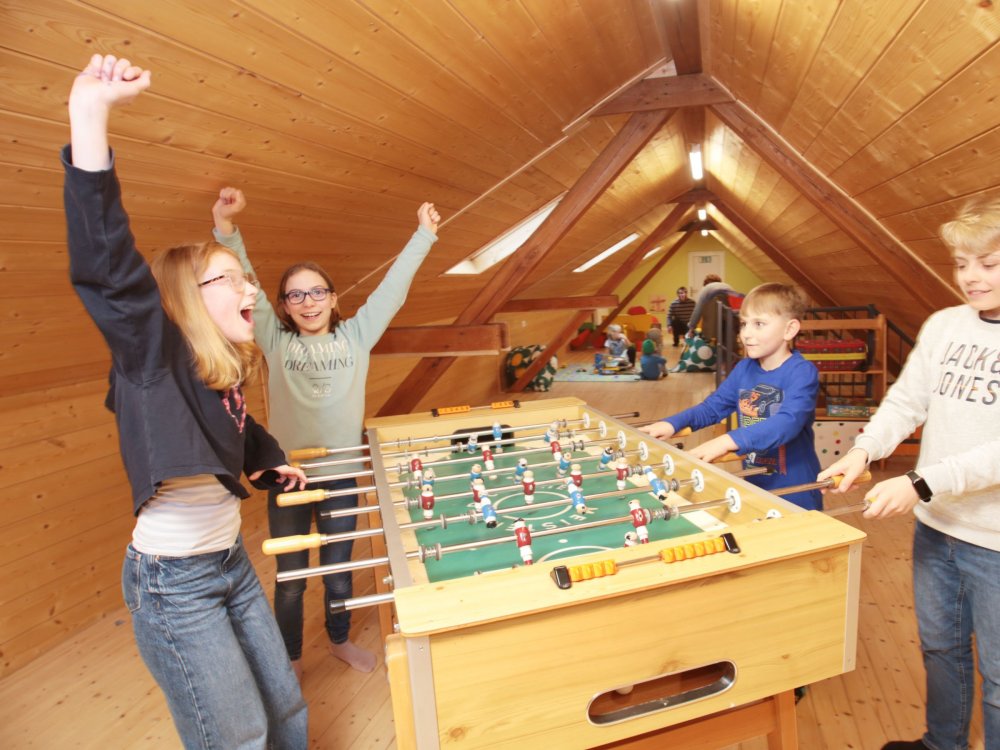 Über 22.000 Quadratmeter laden ein, nach Herzenslust zu spielen. Eine eigene Spielstraße, unser Abenteuerspielplatz mit Niedrigseil-Klettergarten, ein Fußballfeld, unser Spielhügel und eine neue Spielscheune mit einer Röhrenrutsche, Boulderwand und eigenem Spielhaus bieten jede Menge Spaß und Abwechslung. Viele Sandspielgeräte laden auf unserem Sandspielplatz zum begeisterten Wettbauen ein. Und wer Action mag, bedient sich in unserem großen Fuhrpark.