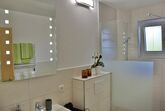Das Bad ist zwar nur 4 qm groß (klein), aber ganz neu und somit zweckmäßig umgebaut. Ausgestattet ist das Bad mit Tageslichtfenster, ebenerdiger Dusche mit Echtglasabtrennung, WC, neues Waschbecken mit Unterschrank und beleuchtetem Schminkspiegel. Auch ein Föhn ist vorhanden.