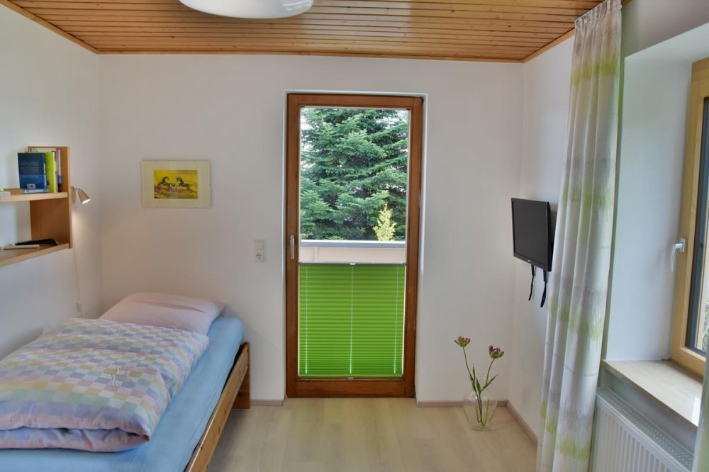 Für eine 3. Person besteht in der Ferienwohnung ein 16 qm Zimmer mit Vollholz-Einzelbett und Schlafzimmerschrank. Ein zusätzlicher Flachbildschirm an der Wand, sowie Leselampe und Sternenhimmel-Deckenleuchte mit Fernbedienung bietet einer 3. Person sich autark in der Wohnung aufzuhalten.