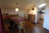 Ihre komfortabel, im Landhausstil eingerichtete Dachgeschoss-Ferienwohnung ist 86 qm groß und befindet sich im 2.Stock. In der Wohnung gibt es eine Küche, eine Diele mit Abstellmöglichkeiten, Kleiderschrank, ein Badezimmer, ein Gäste WC und einen Westbalkon. Außerdem gibt es zwei separate Schlafzimmer sowie ein großes Schlafsofa und Zustellbett im Wohnzimmer. Das erste Schlafzimmer ist im Landhausstil eingerichtet und verfügt über 1 Doppelbett (180x200cm) und Sie haben dort einen LED-TV zur Verfügung. Das zweite Schlafzimmer (Kinderzimmer) verfügt über 1 Einzelbett (nicht verschiebbar 90x200cm) sowie ein Stockbett (90x200cm für 2 Erwachsene geeignet). Auch hier finden Sie einen LED-TV. Gerne stellen wir Ihnen auf Anfrage zusätzlich ein kleines Kinderbett (120x60 cm), Kinderfallschutz zur verfügung. Die Küche ist voll ausgestattet mit Kaffeemaschine, Spülmaschine, Kühlschrank inkl. Gefrierfach und Ceran-Herd. Neben der Küche befindet sich eine kleine Essecke, an der Sie Ihre Mahlzeiten genießen können.