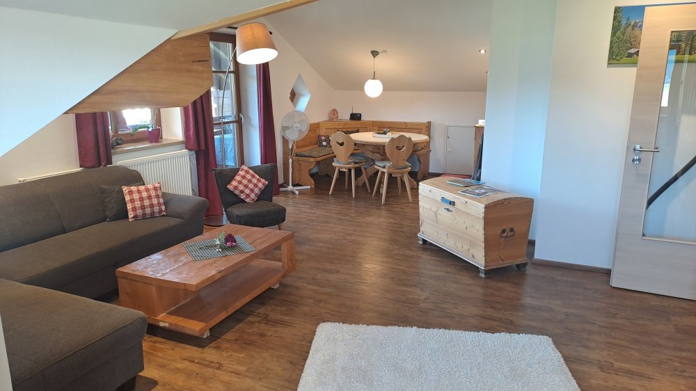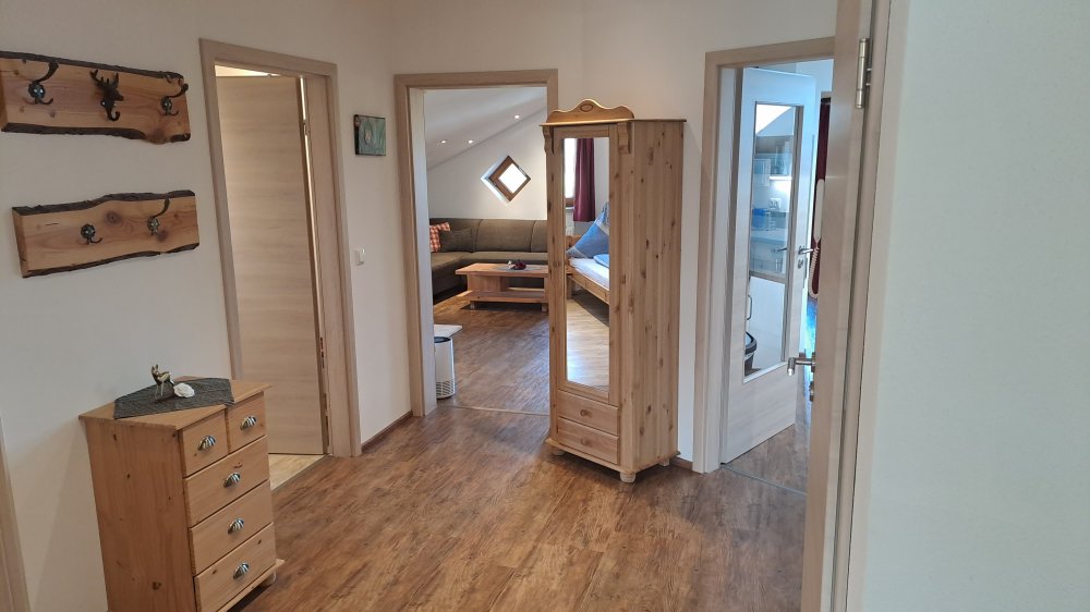 Weitere Vorzüge, die für einen Aufenthalt in unserer Ferienwohnung sprechen, sind kostenfreies Wireless-Lan sowie Unterstellmöglichkeiten für Ihre Fahrräder oder Ski/Rodel. Reisen Sie mit dem Auto an, so können Sie direkt am Haus auf unserem Parkplatz parken.
