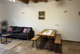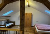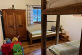 Die Wohnung, ist eine Galerie Wohnung und befindet sich im 1. Stock. Sie besitzt zwei Schlafzimmer, ausgestattet mit einen Doppelbett (180x200 cm), Einzelbett (90x200 cm) und Stockbett (90x200 cm). Das Badezimmer mit Fenster ist ausgestattet mit einer Waschmaschine, Badewanne, Dusche, WC.