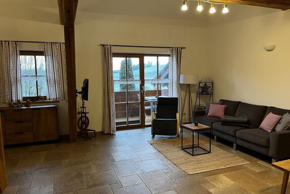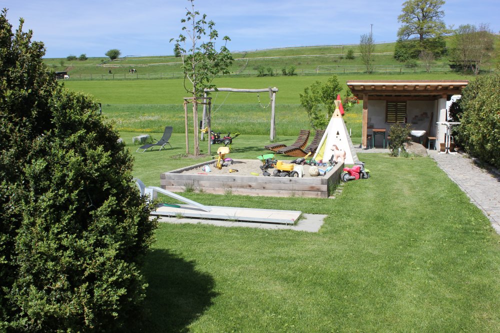 Unser Hof liegt in sehr ruhiger und ländlicher Lage. Unsere Ferienwohnungen, befinden sich im 1. Stock, verfügen beide über einen Südbalkon mit Blick in die Berge. Zu den Ferienwohnungen gibt es einen Gartenbereich mit einer Minigolfbahn, Tischtennis, Trampolin, Sandkasten, überdachten Sitzplatz , Schaukel und natürlich auch Sonnenliegen für die Eltern zum entspannen. Mit uns am Hof leben Ziegen, Schafe, Hasen, Hühner, Enten, sowie unser 2 Hunde Emmi und Maxl und noch ein paar mehr...