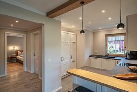 Die großzügig ausgelegte Küche bietet Euch ausreichend Platz bei der Zubereitung der kulinarischen Spezialitäten. Ausgestattet mit einem 4-Feld-Induktionsherd, einem Kühlschrank mit Gefrierfach und einer Spül- und Kaffeemaschine.