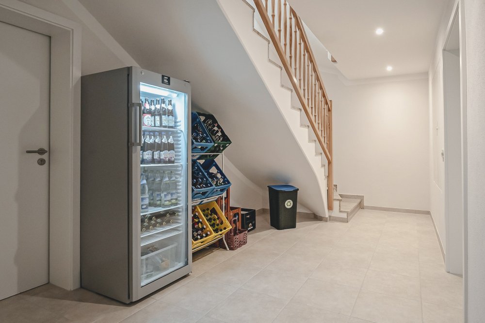 Die großzügig ausgelegte Küche bietet Euch ausreichend Platz bei der Zubereitung der kulinarischen Spezialitäten. Ausgestattet mit einem 4-Feld-Induktionsherd, einem Kühlschrank mit Gefrierfach und einer Spül- und Kaffeemaschine.