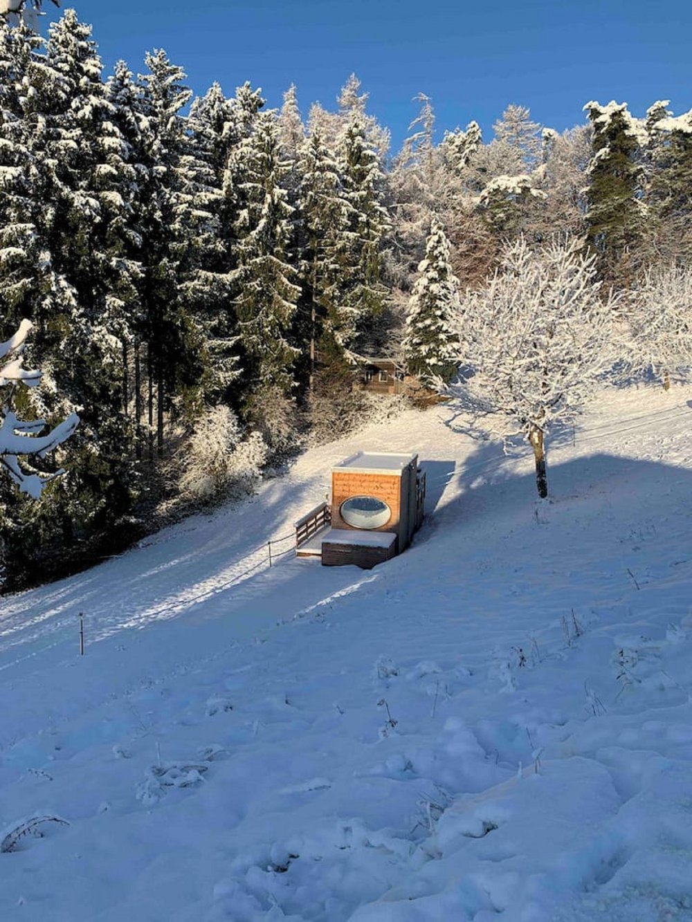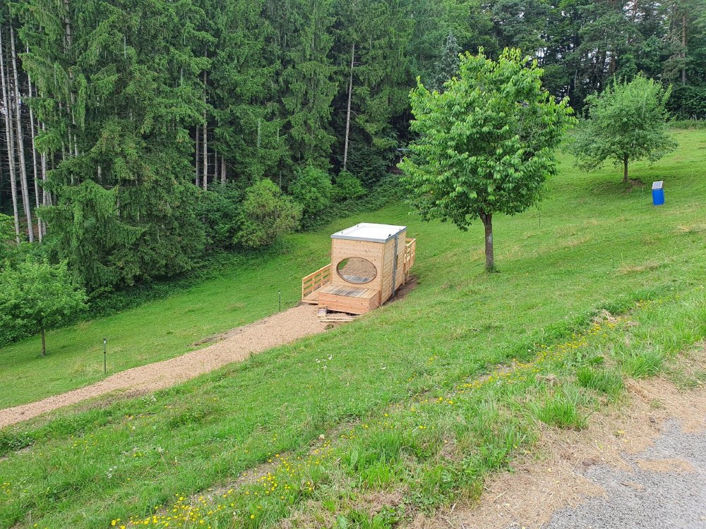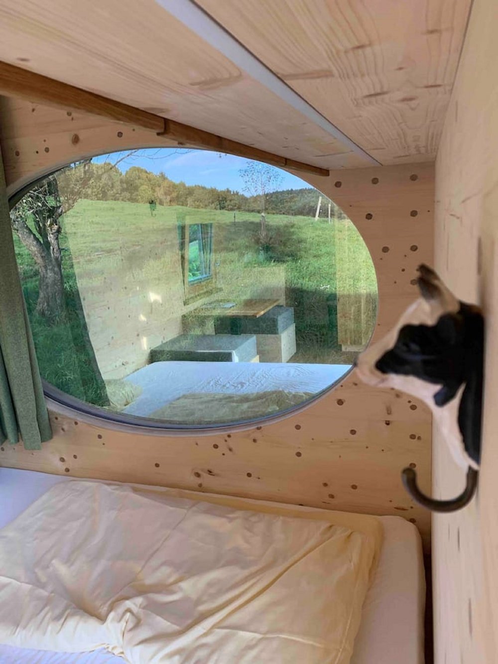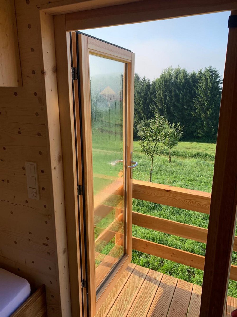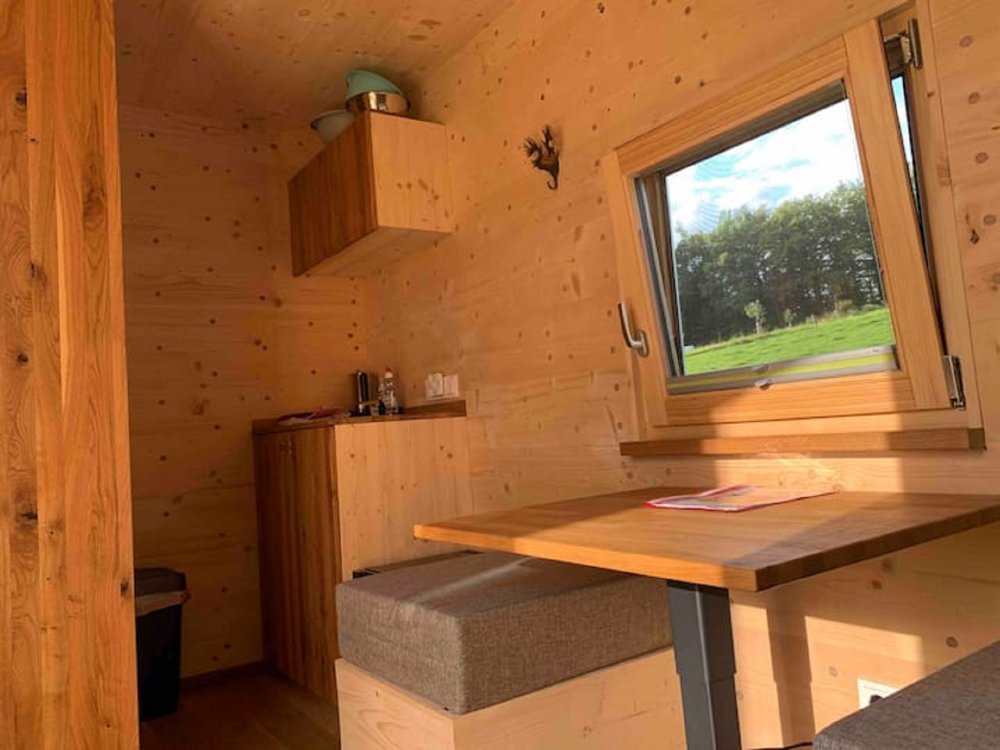 Unser Zinipi ist aus 100 % Holz (Holz100 von Thoma). Der Innenausbau ist mit Zirbenholz gemacht. Durch die leim- und Schraubenfreie Bauweise garantieren wir für ein einmaliges Wohlfühlklima. Du schläfst in einem 1,60 m breitem Bett mit direkter Aussicht in die Natur durch das wunderschöne Panoramafenster. Ein kleines Küchenmodul, eine Kaffeemaschine, ein Wasserkocher und ein Minibar-Kühlschrank stehen Dir zur Verfügung um kleine Brotzeiten oder Frühstück zu machen.
