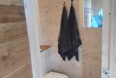 Unser Zinipi ist aus 100 % Holz (Holz100 von Thoma). Durch die leim- und Schraubenfreie Bauweise garantieren wir für ein einmaliges Wohlfühlklima. Du schläfst in einem 1,60 m breitem Bett mit direkter Aussicht in die Natur durch das wunderschöne Panoramafenster. Ein kleines Küchenmodul, eine Kaffeemaschine, ein Wasserkocher und ein Kühlschrank stehen Dir zur Verfügung um kleine Brotzeiten oder Frühstück zu machen. Außerdem gibt es eine mobile Kochplatte. Das Zinipi verfügt nicht über eine eigene Nasszelle. Das Sanitärhaus des Campingplatzes ist in 10 m Entfernung zur vollen Nutzung.