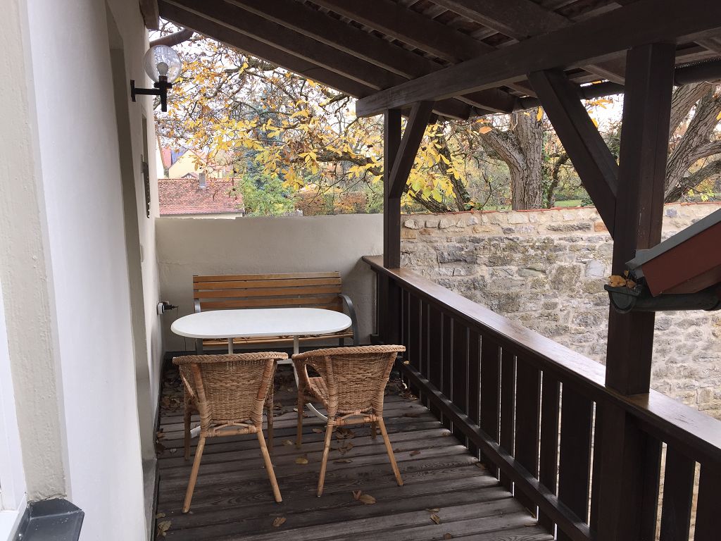 Im 1. Stockwerk des Gutshauses gelegen, bietet diese Wohnung Wohnraum auf ca. 90 qm für bis zu 4 Personen. Die gut ausgestattete Wohnung bietet Ihnen ein Schlafzimmer mit Doppelbett und ein Schlafzimmer mit 2 Einzelbetten. Der großzügig gestaltete Wohn- und Essbereich verfügt über Digital-TV, Weinkühlschrank, eine Sitzecke und Essbereich. Im Badezimmer befinden sich eine Dusche und WC. Als Besonderheit bieten wir Ihnen einen überdachten Balkon, mit einmaligem Blick auf den Herrengraben (Wallanlage die sich rings um die Altstadt von Iphofen zieht und die grüne Lunge der Stadt bildet) sowie in unseren romantischen Innenhof und auf den Eulenturm, an dem Sie oftmals die dort ansässigen Turmfalken bei ihren spektakulären Flügen beobachten können. Natürlich können Sie auch unseren Garten am Herrengraben nutzen, in den Sie bequem von unserem Innenhof aus gelangen.