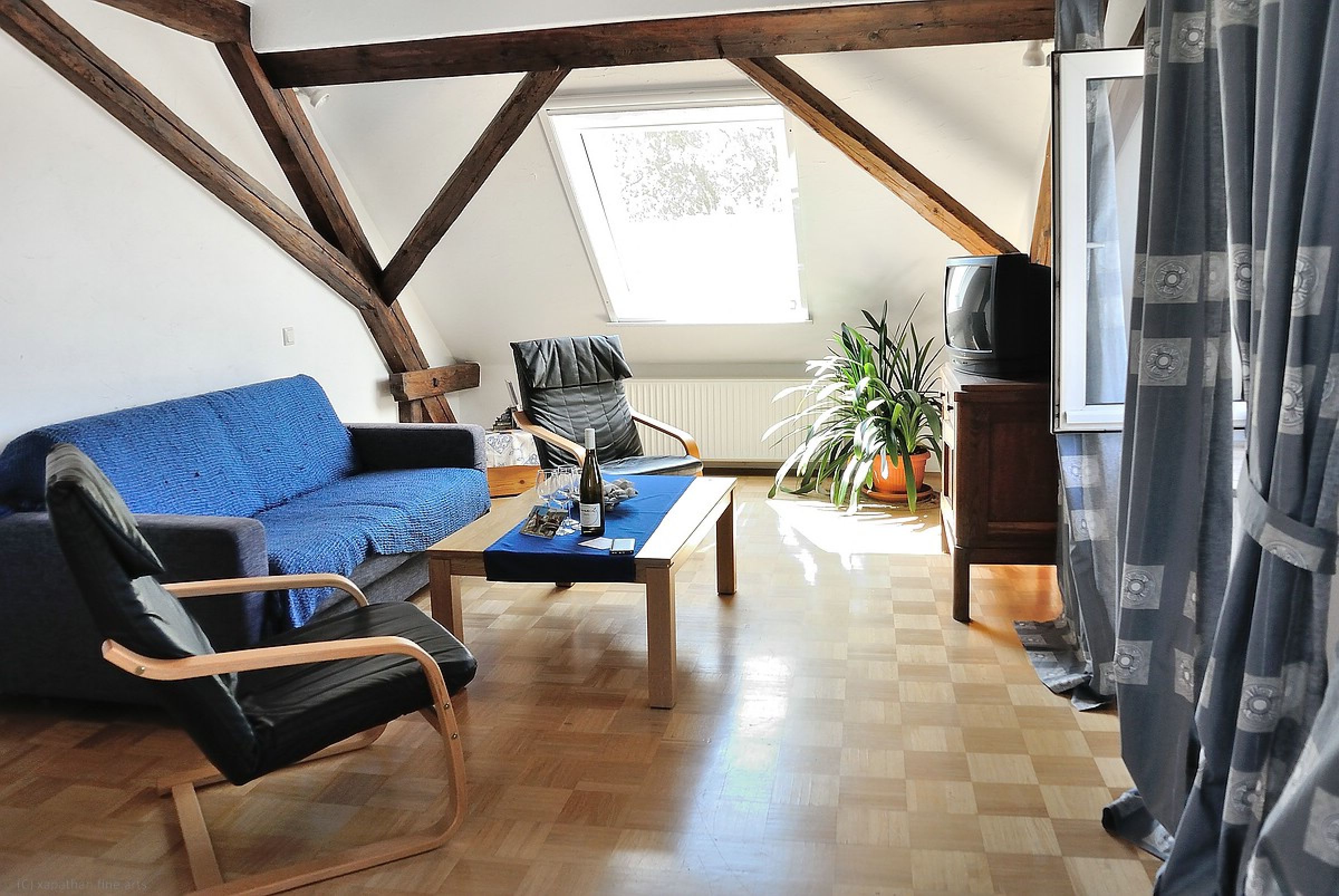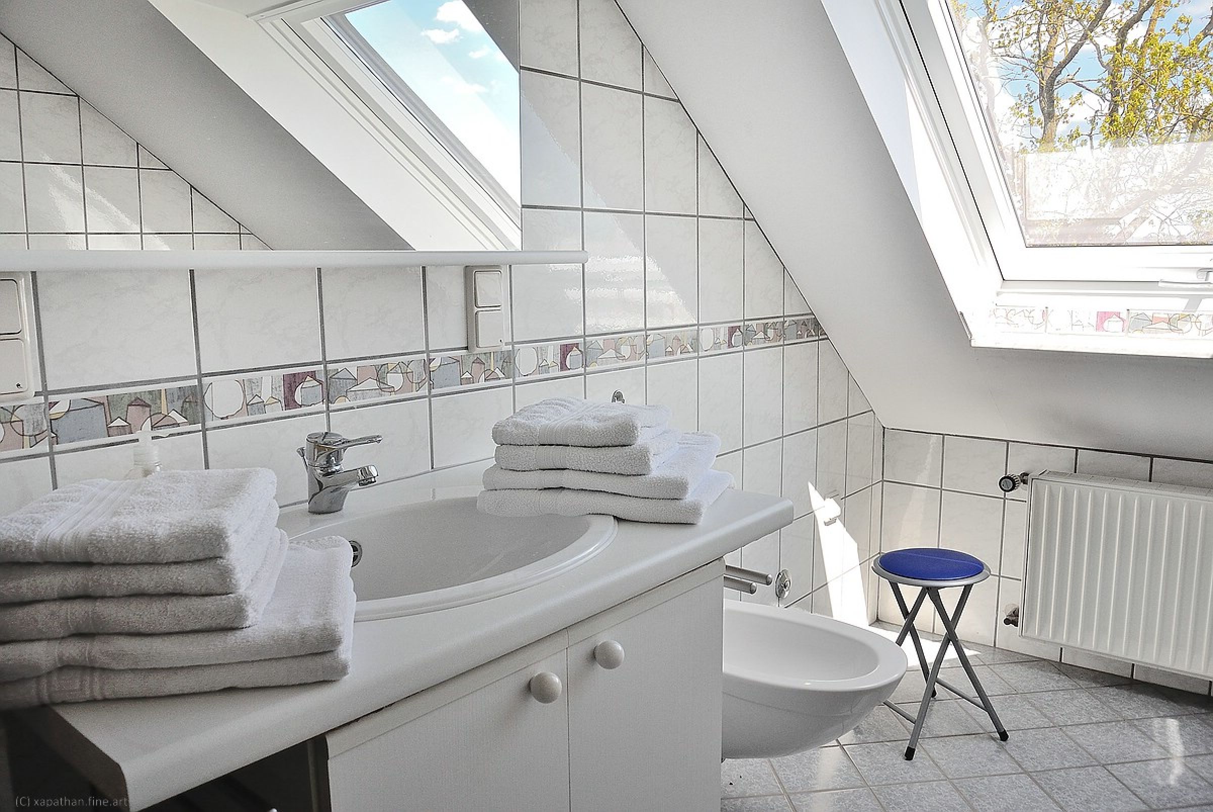 Ihre Dach-Ferienwohnung eignet sich ideal für bis zu 4 Personen. Auf circa 70 qm Wohnung mit großen Dachfenstern verteilt, bietet Ihnen die Wohnung 2 separate Schlafzimmer, ein Wohnzimmer mit ausziehbarer und Küchenzeile mit Essbereich. Das Badezimmer ist mit Dusche, Badewanne und WC ausgestattet.