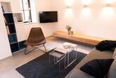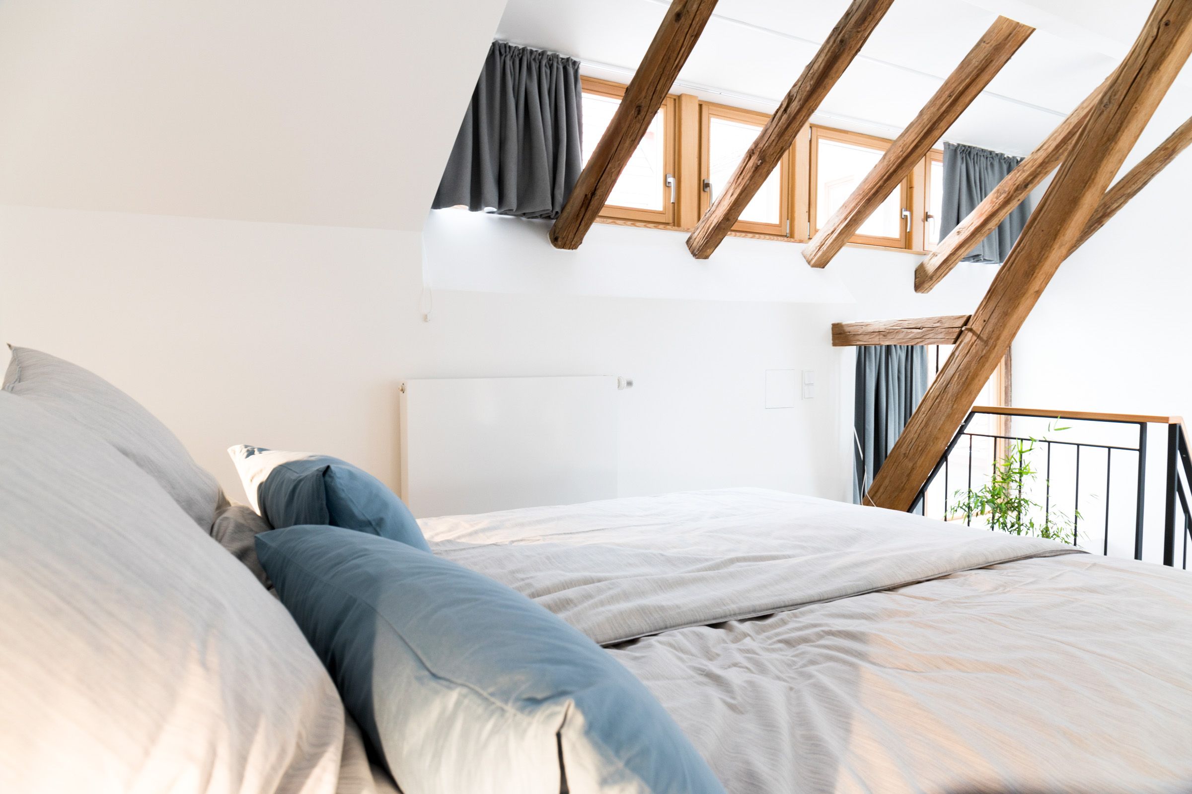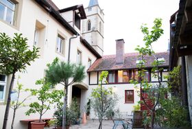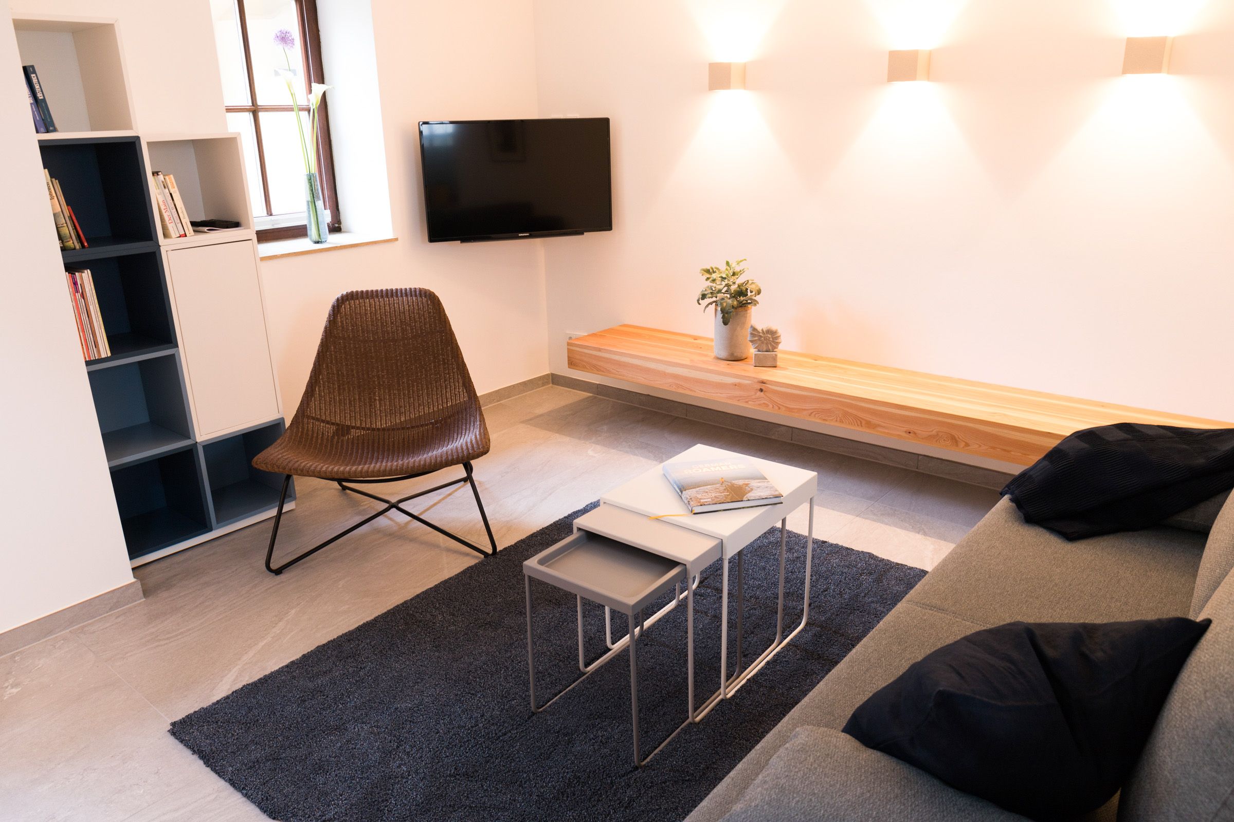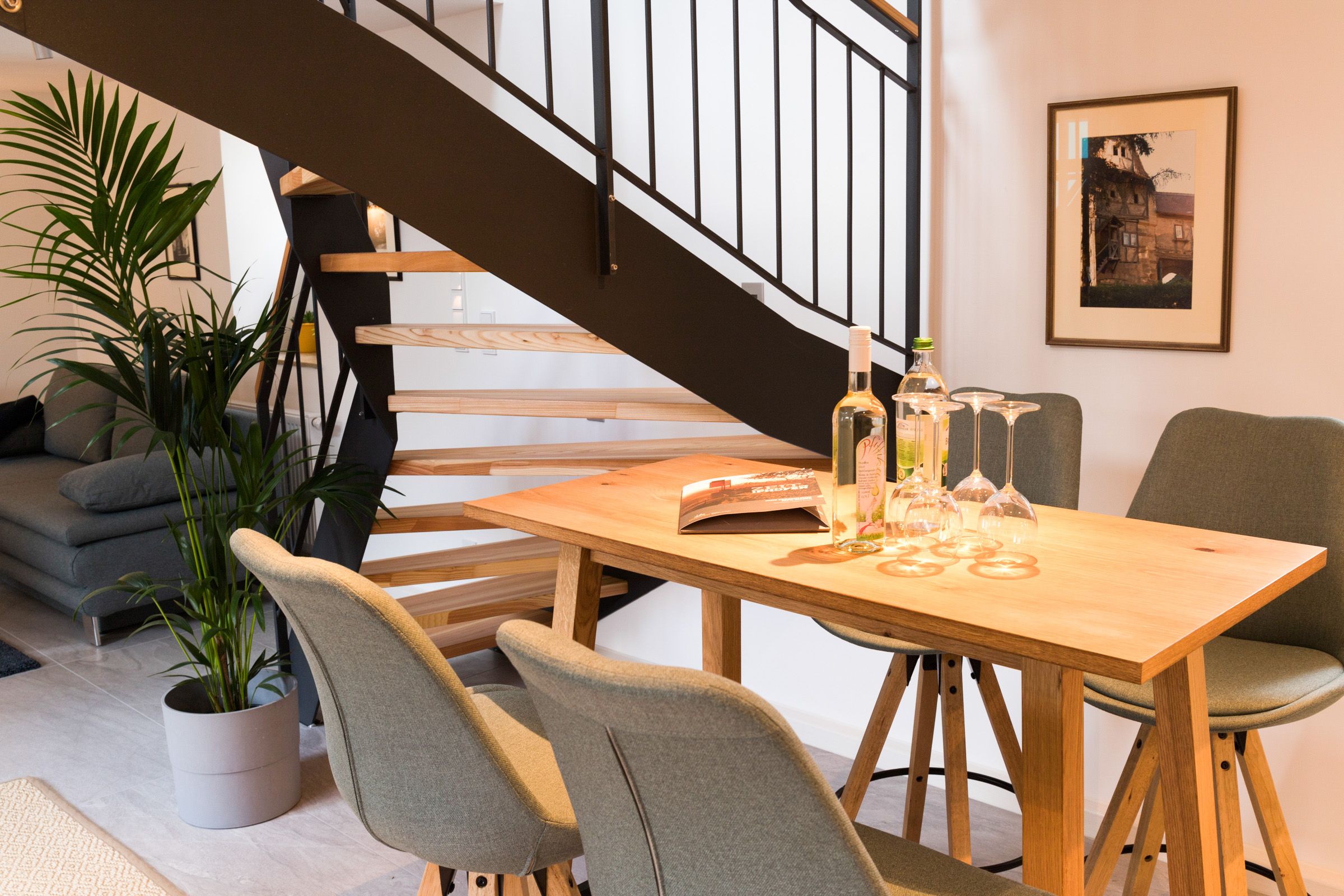 Das Einzeldenkmal Wenkheimer Hof liegt in der historischen Altstadt Iphofens. Im Innenhof dieses Einzeldenkmals erwartet Sie eine großzügig und offen gestaltete Ferienwohnung (65 qm) mit separatem Eingang. Im vollausgestatteten Küchenbereich haben Sie die Möglichkeit, sich selbst zu verpflegen. Über eine Treppe gelangen Sie in den Schlafbereich mit Boxspringbett (bezogen) und zweitem Flachbildfernseher. Auf der hellen Galerie finden Sie einen Schreibtisch, an dem Sie ihre Ausflüge oder Tagestouren planen können. Der Wohnbereich ist neben dem Sofa mit einem gemütlichen Sessel ausgestattet. Auch finden Sie hier einen Flachbildfernseher. Das Funktionssofa bietet mit seinen zwei Federkernmatratzen weitere vollwertige Schlafmöglichkeiten. Das Bad ist mit bodengleicher Dusche, großzügigem Waschtisch und illuminierten Spiegel ausgestattet. Für den täglichen Gebrauch finden Sie einen Kosmetikspiegel, Föhn und Handtücher. Die Fußbodenheizung sorgt für ein angenehmes Raumklima. WLAN ist in der Unterkunft kostenfrei nutzbar. Der schön angelegte Innenhof bietet Ihnen Sitzmöglichkeiten im Freien. Eine Auswahl an Cafés, Restaurants und Weinstuben in der unmittelbaren Umgebung. Bitte beachten Sie, dass das Mitbringen von Haustieren sowie Rauchen nicht erlaubt sind. Parkmöglichkeiten befinden sich in unmittelbarer Nähe mit direktem Zugang. Die Region ist ideal für Wander- oder Radtouren. Der Bahnhof mit einer Zuganbindung nach Würzburg (20 Minuten) und Nürnberg (40 Minuten) ist circa 2 Kilometer entfernt. Auch Bamberg ist mit dem Auto für einen Tagesausflug in ca. 50 Minuten zu erreichen; Rothenburg 45 Minuten Fahrzeit.