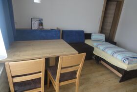 Das Apartment verfügt über 1 Schlafzimmer mit Doppelbett, 1 Bad mit Dusche/WC, Schlafsofa für die 3.+ 4. Person in der Wohnküche, Kabel-TV, Internet, Safe, Fön, Telefon und Balkon. Die Wohnküche ist ausgestattet mit Ceranfeld-Herd, Dunstabzug, Kühl-Gefrierschrank, Mikrowelle, Geschirrspüler, Kaffeemaschine und Geschirr. Größe ca. 34 m². Auf Anfrage getrennte Betten möglich.