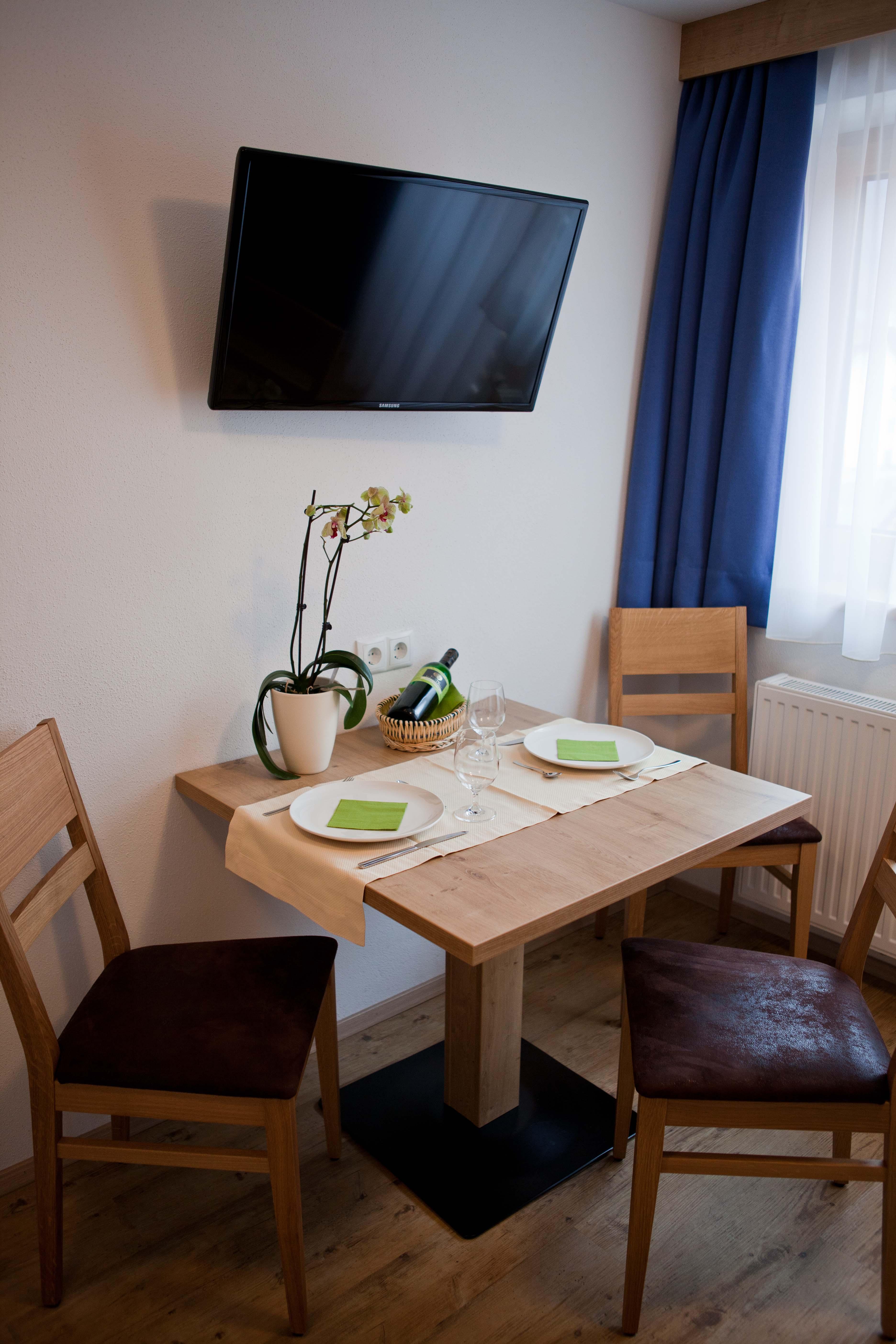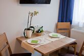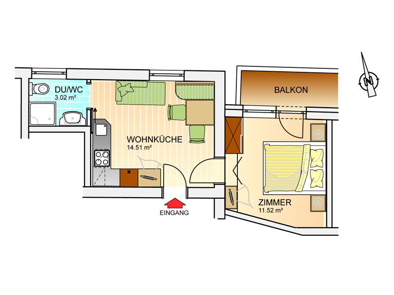 Das Apartment verfügt über 1 Schlafzimmer mit Doppelbett, 1 Bad mit Dusche/WC, Schlafsofa in der Wohnküche, Kabel-TV, Internet, Safe, Fön, Telefon und Balkon. Die Wohnküche ist ausgestattet mit Ceranfeld-Herd, Dunstabzug, Kühl-Gefrierschrank, Mikrowelle, Geschirrspüler, Kaffeemaschine und Geschirr. Größe ca. 27 m². Auf Anfrage getrennte Betten möglich.