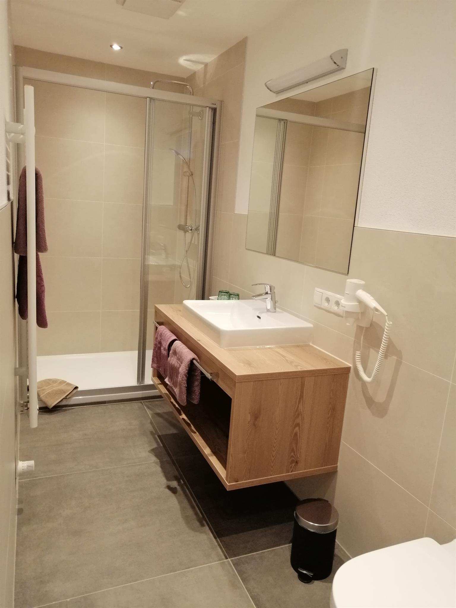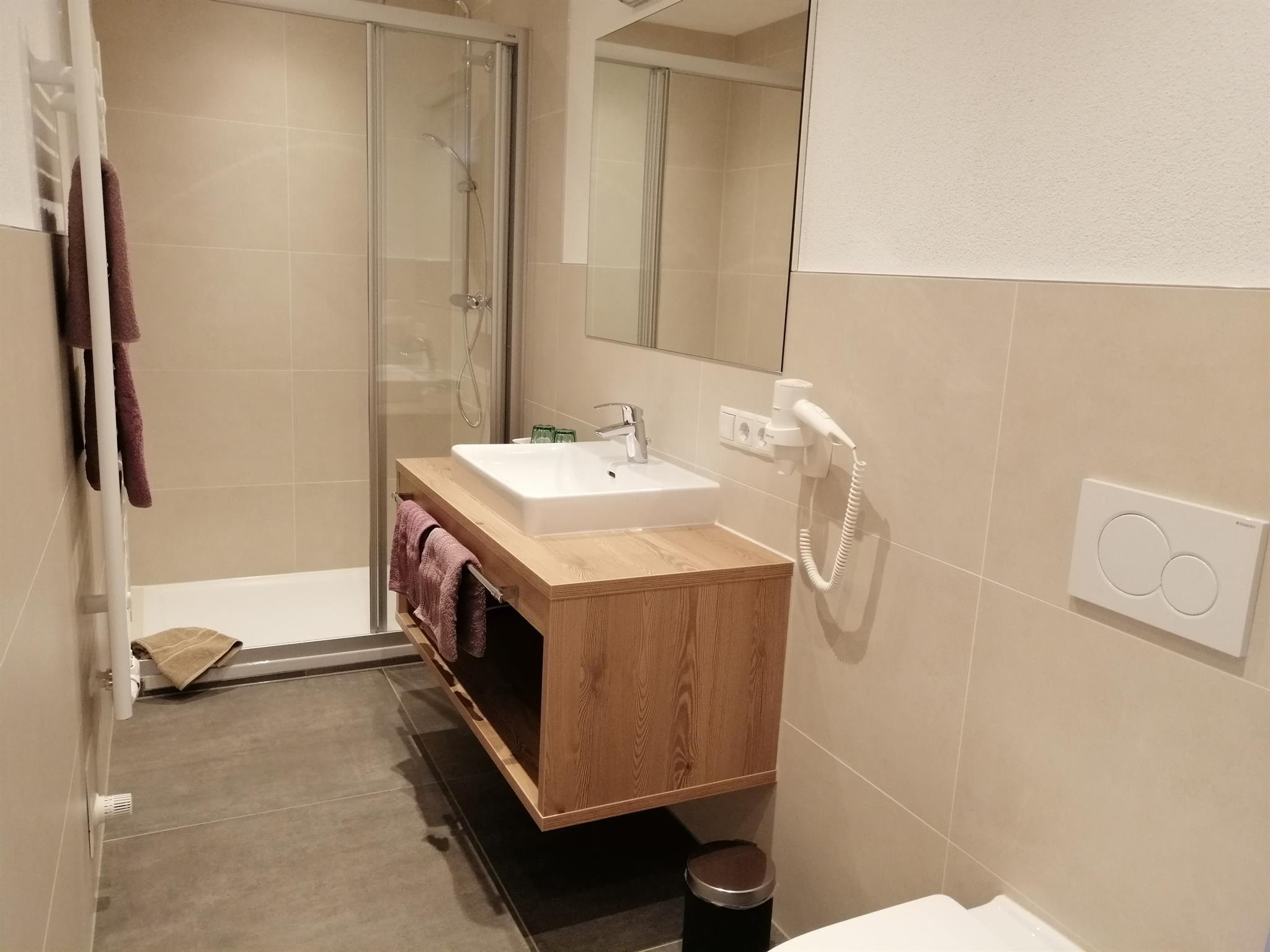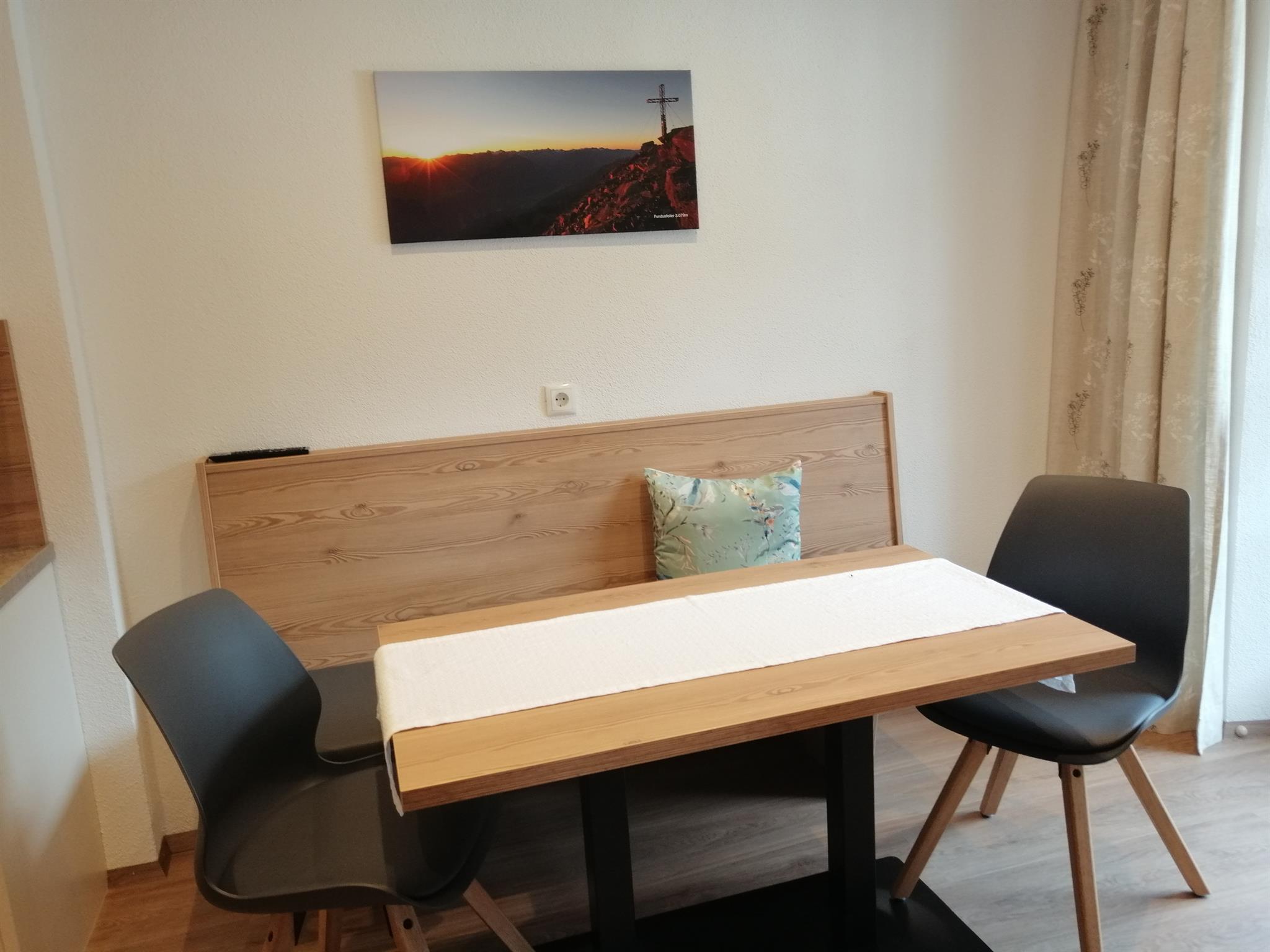 Appartement Fundus mit ca. 30 m²: ein Doppelzimmer, ein Wohnraum mit einer voll ausgestatteten Küchenzeile (Spülmaschine, Cerankochfeld, Backofen, Kühlschrank, Kaffeemaschine (Filter oder Kapseln - Cremesso), Wasserkocher, Toaster uvm.), Essecke und Balkon; ein Badezimmer mit Dusche/WC, Fußbodenheizung, Handtuchtrockner und Haartrockner.