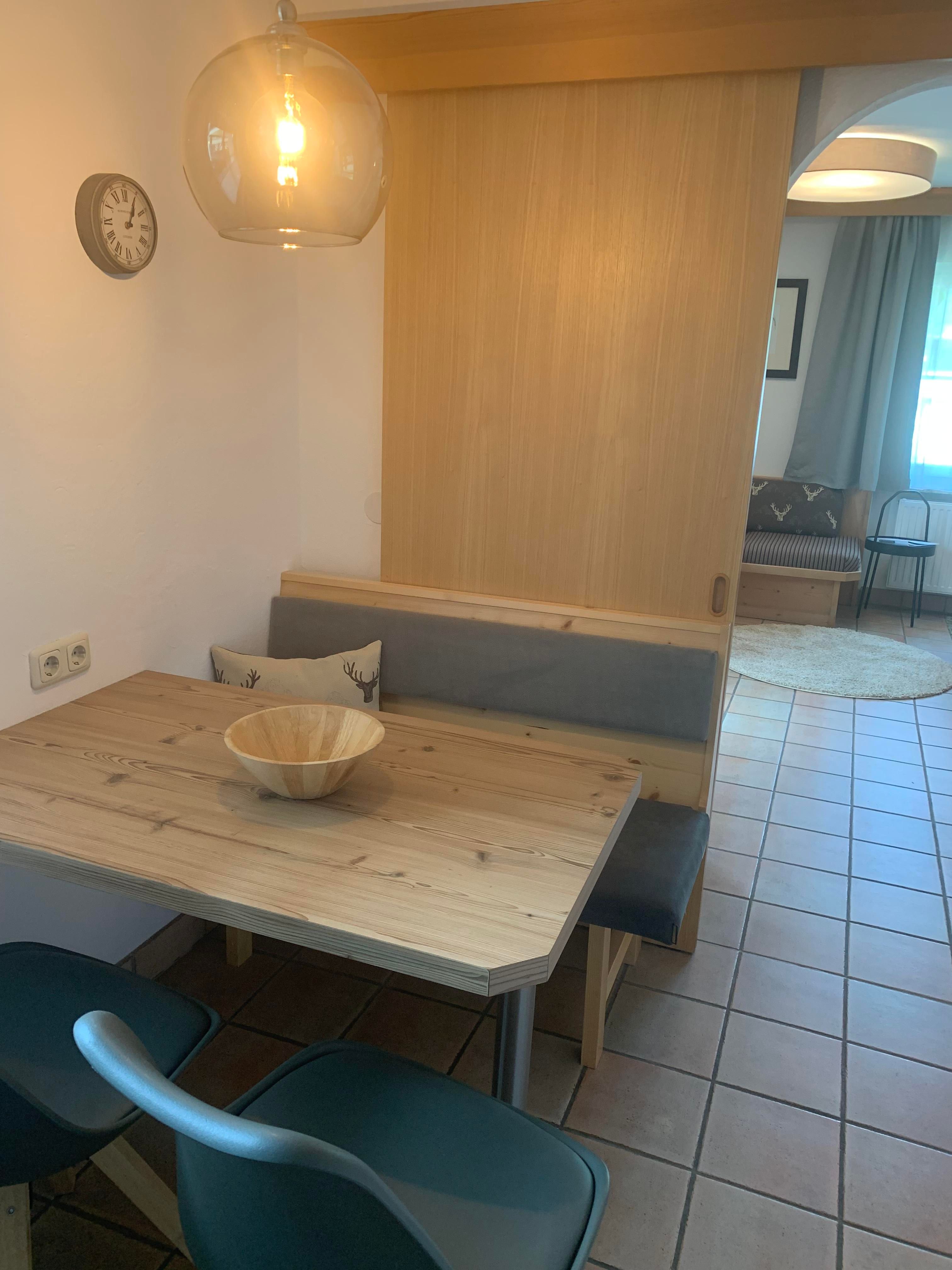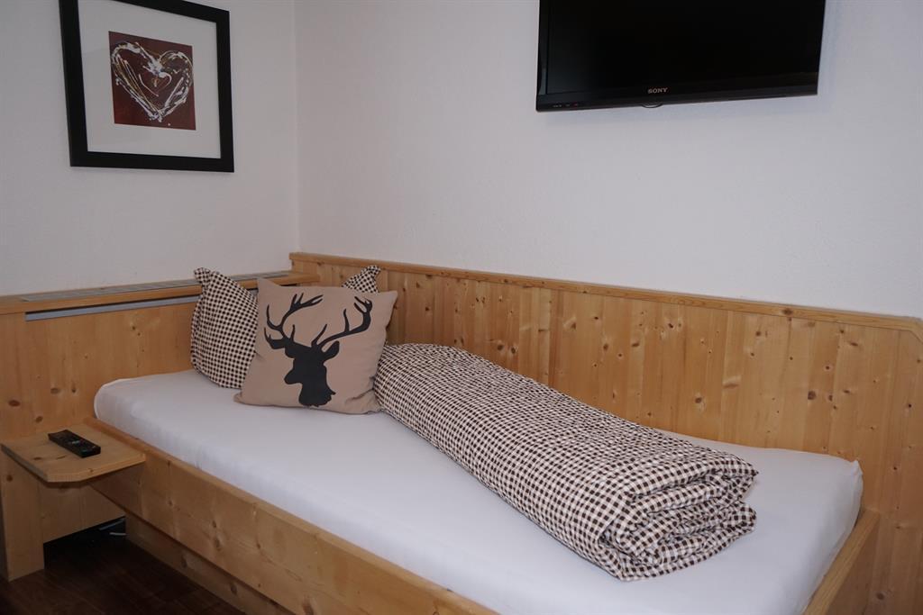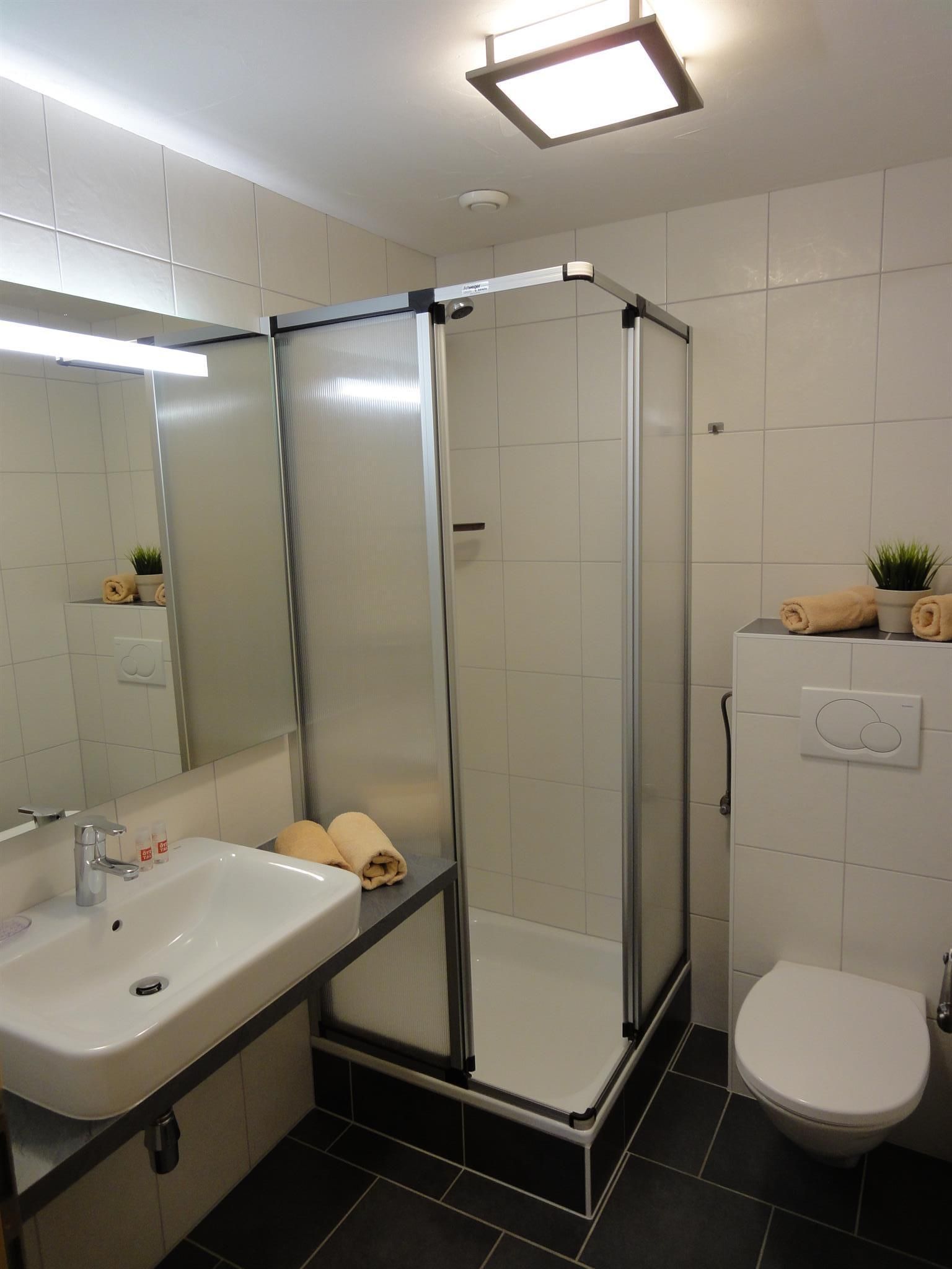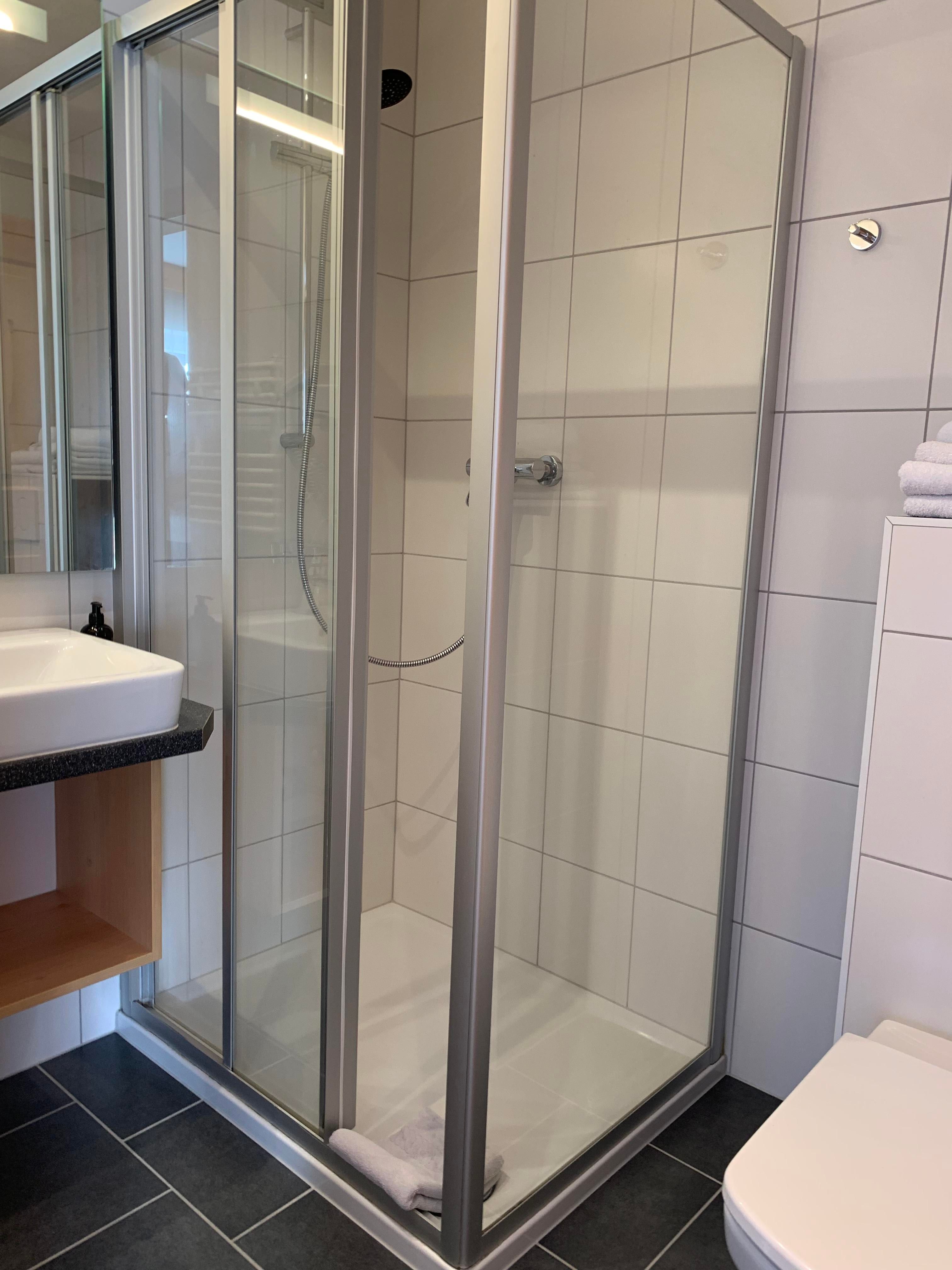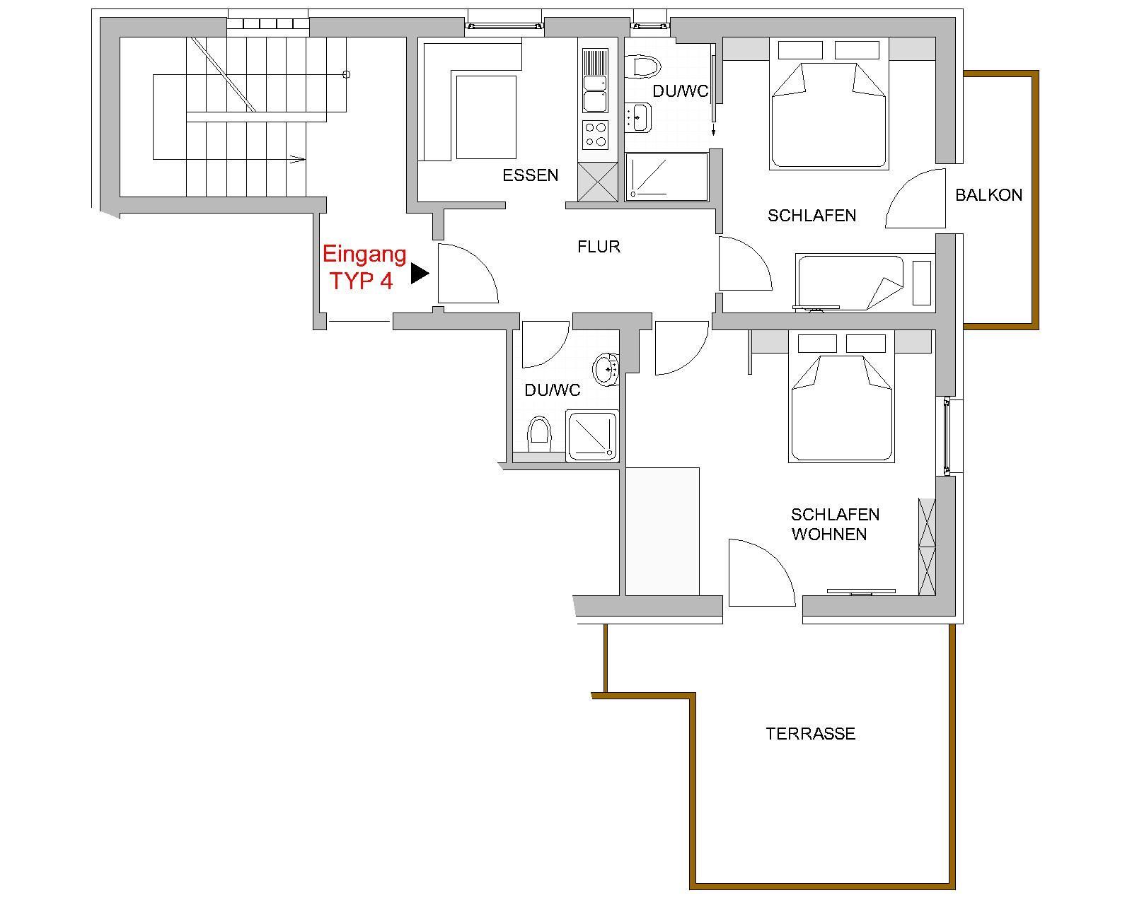 Unser Comfort-Appartment A4 mit ca. 55 m² für 2-5 Personen verfügt über 1 Schlafzimmer mit Doppel- und Einzelbett, SAT-Flat TV und einem Badezimmer mit DU/WC und Föhn. Ein weiteres Wohn-Schlafzimmer mit Doppelbett, Fernseh-Sitzecke mit SAT-Flat-TV, Safe und einem zusätzlichen Badezimmer mit DU/WC und Föhn. Die Wohnküche mit geräumiger Sitzecke ist mit Cerankochfeld mit Backofen, Geschirrspüler, Nespresso-Kaffeemaschine, Kühlschrank, Wasserkocher und Mikrowelle ausgestattet und hat zudem eine großzügige Terrasse mit Mobiliar für gemütliche Stunden im Freien.