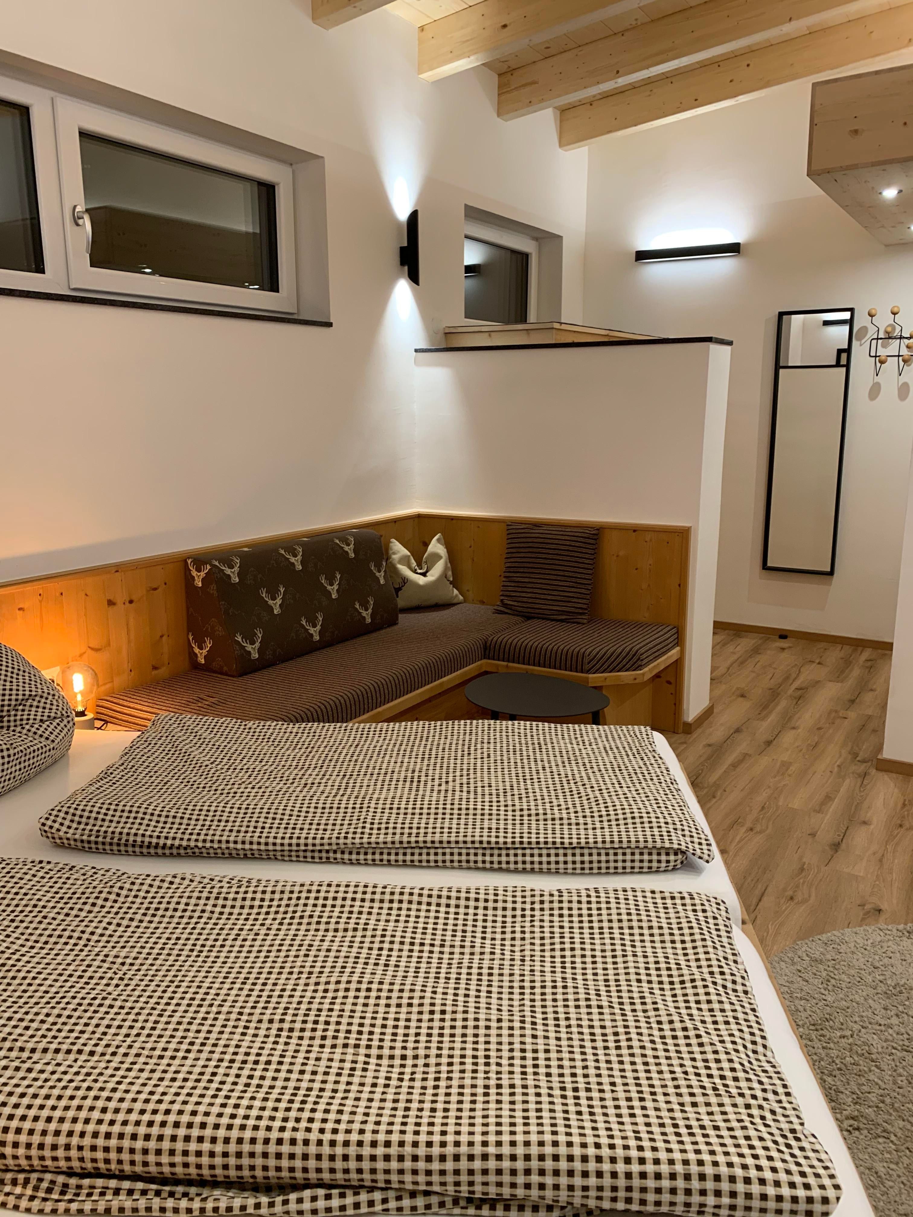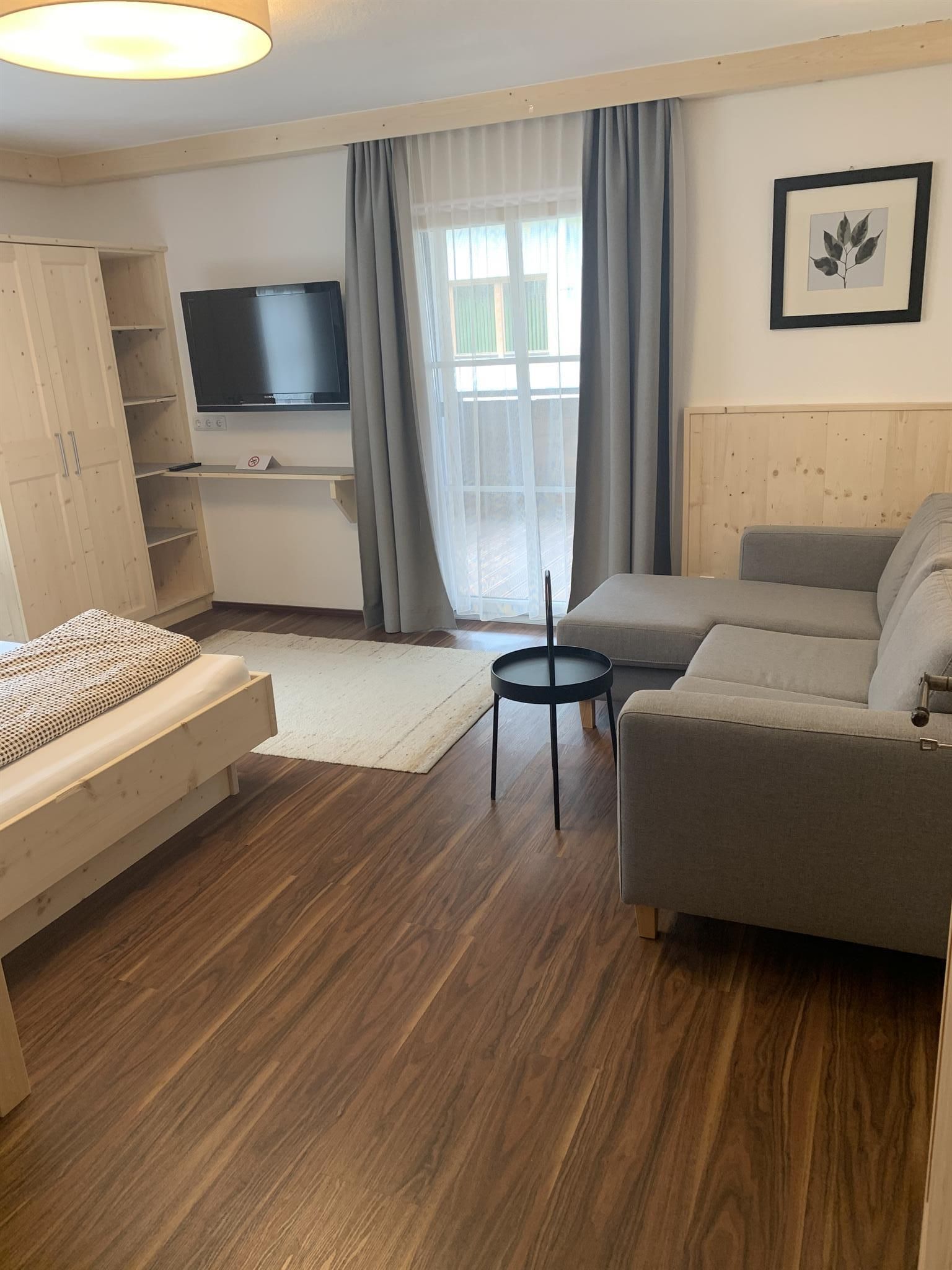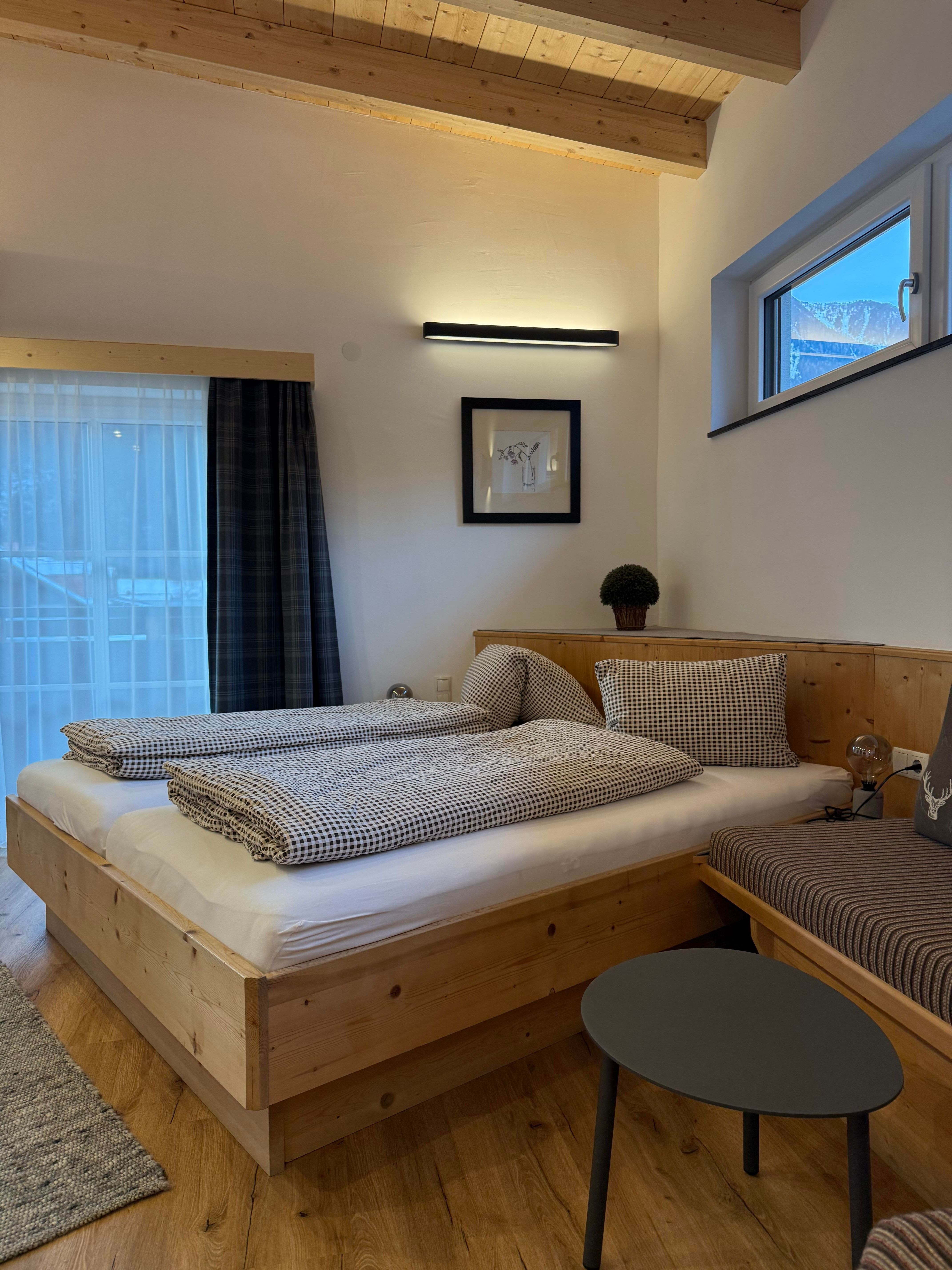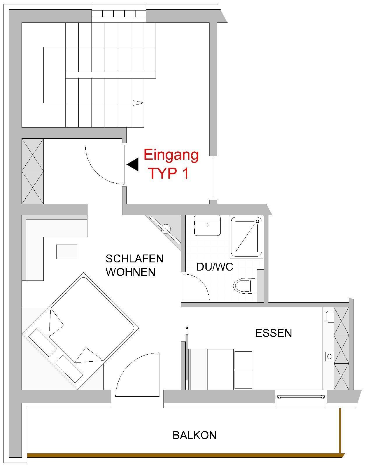 Unser Apppartement A1 für 2 Personen (ca. 30 m²) ist mit Holzmöbeln ausgestattet und verfügt über: 1 Wohn-Schlafzimmer mit Doppelbett und kleiner Sitzecke, SAT-Flat-TV, Badezimmer mit DU/WC und Föhn. Die separate Küche mit Esstisch ist mit Kühlschrank, Herd mit Ceranfeld, Geschirrspüler, Nespresso-Kaffemaschine, Wasserkocher, Mikrowelle und Safe eingerichtet. Ein abgetrennter Balkonanteil mit Balkonmöbeln lädt zum gemütlichen Sonnen und Entspannen ein.