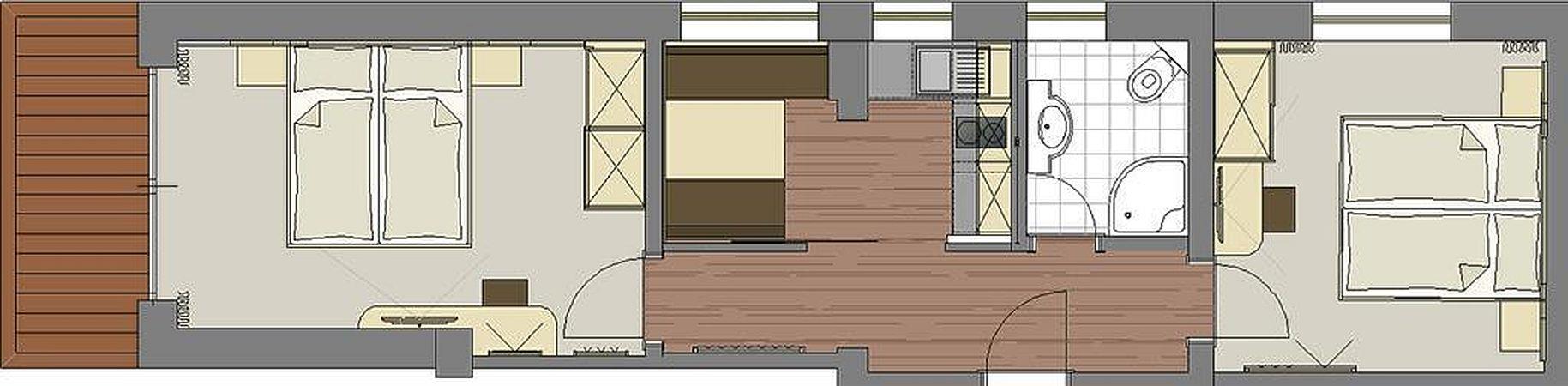 Appartement für 2-4 Personen. Modern mit hellem Holz und warmen Farben eingerichtet. Flur, 2 Doppelzimmer mit je Flat TV, Telefon, Balkon; 1 Badezimmer mit Dusche/WC, Fön, Kosmetikspiegel, beheizter Handtuchhalter. Voll ausgestattete Küche mit gemütlichem Essbereich, Kühlschrank, Geschirrspüler, Mikrowelle, 4-Platten Ceranfeld, Teekocher, Kaffeemaschine; Größe ca. 48 m².
