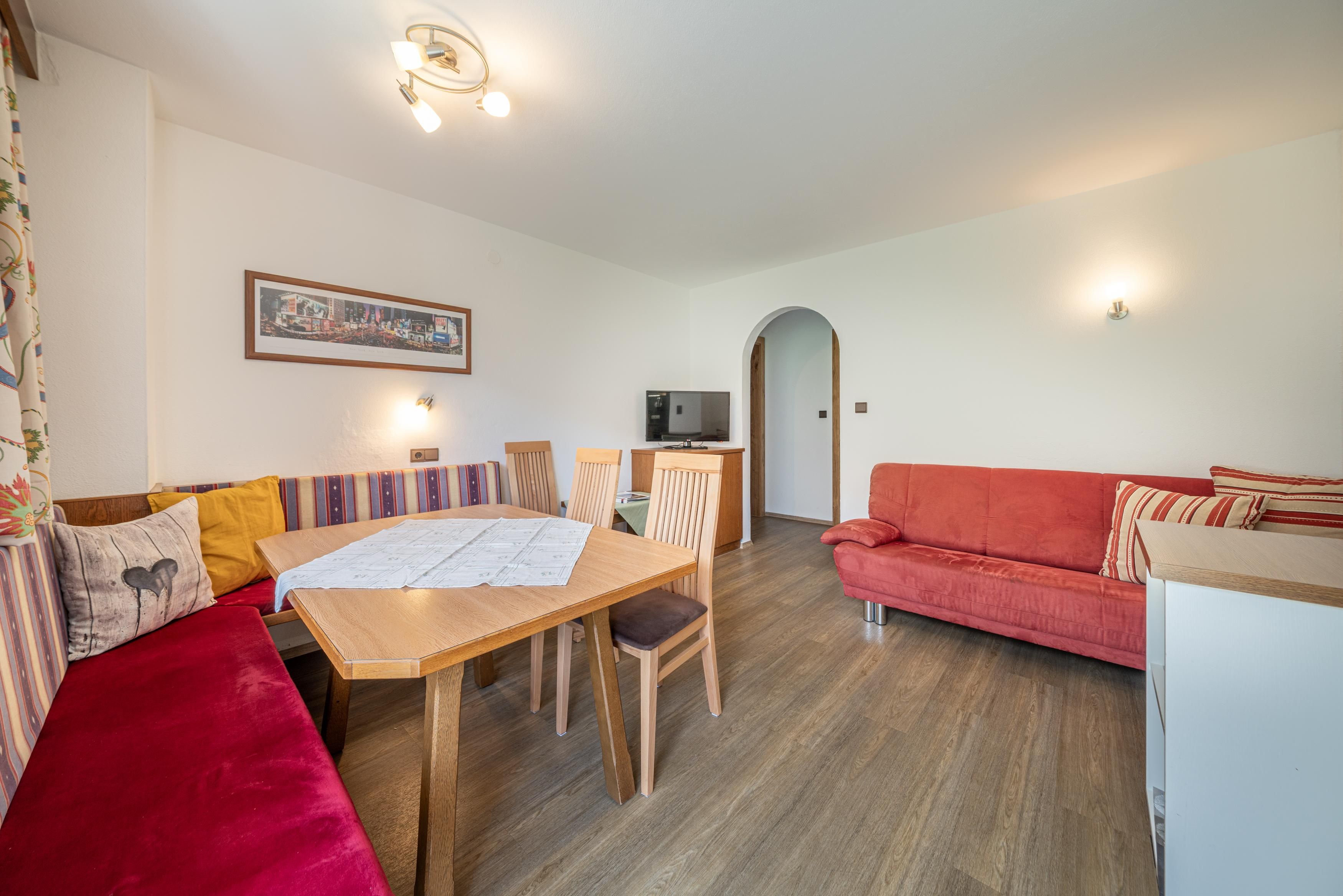 Unsere komfortablen Apartments liegen in ruhiger Lage, umgeben von der beeindruckenden Bergwelt Tirols – und dennoch ganz nah am Geschehen. Einen Supermarkt sowie einen Imbiss erreichen Sie in nur etwa 3 Gehminuten.
